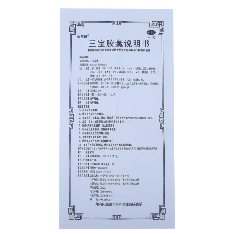 【佰年龄】三宝胶囊300mg*20粒/盒