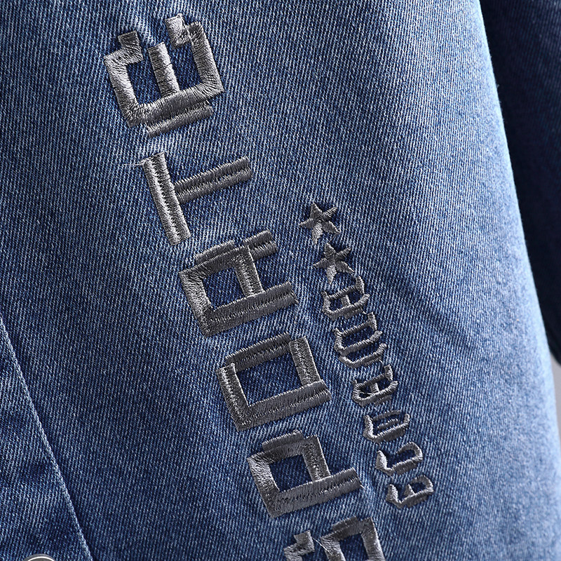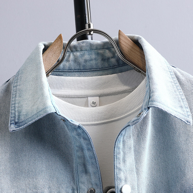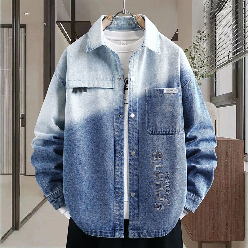 渐变牛仔外套春秋青少年帅气翻领宽松夹克初高中学生帅气休闲褂子
