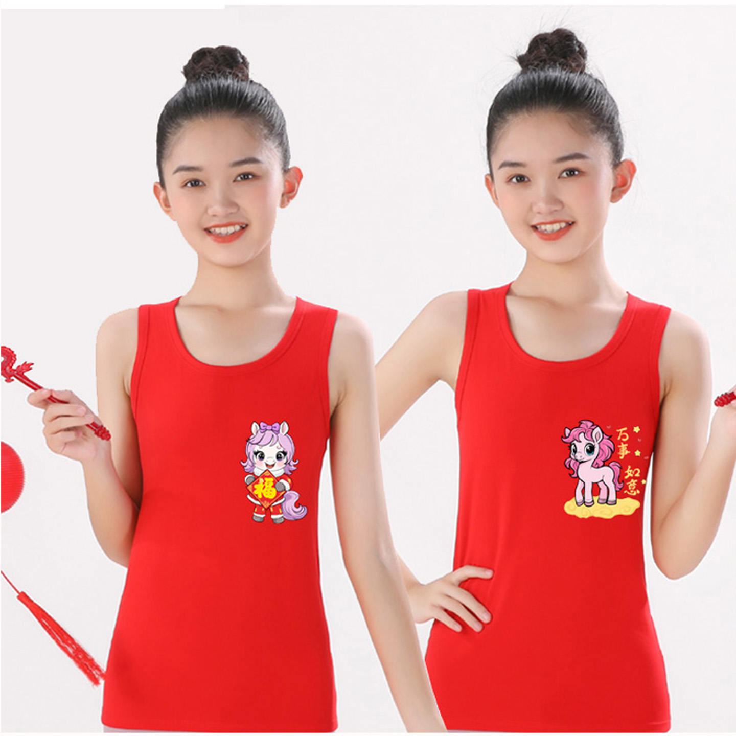 女童红背心本命年12岁马年女孩内衣13中大童纯棉无袖打底儿童内衣