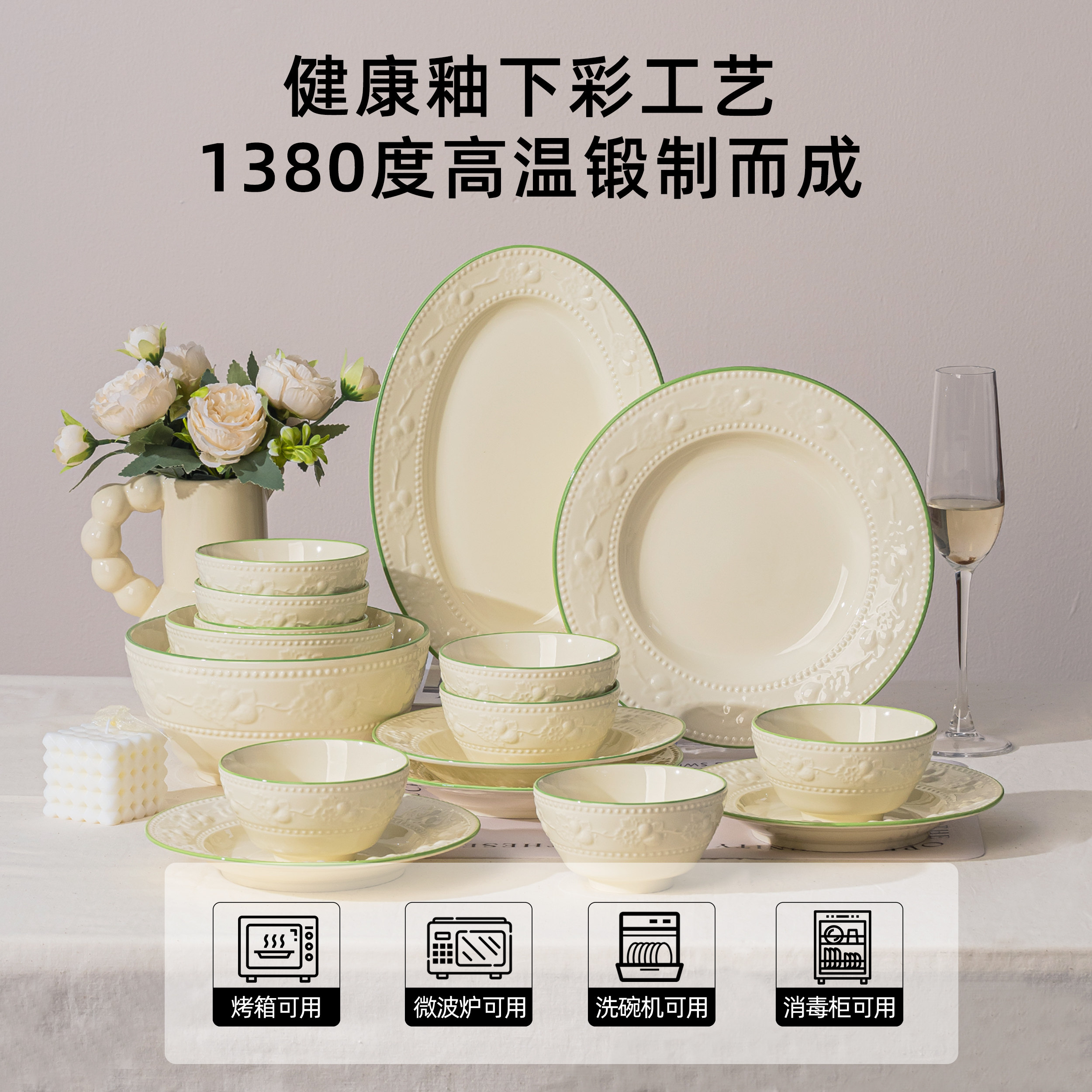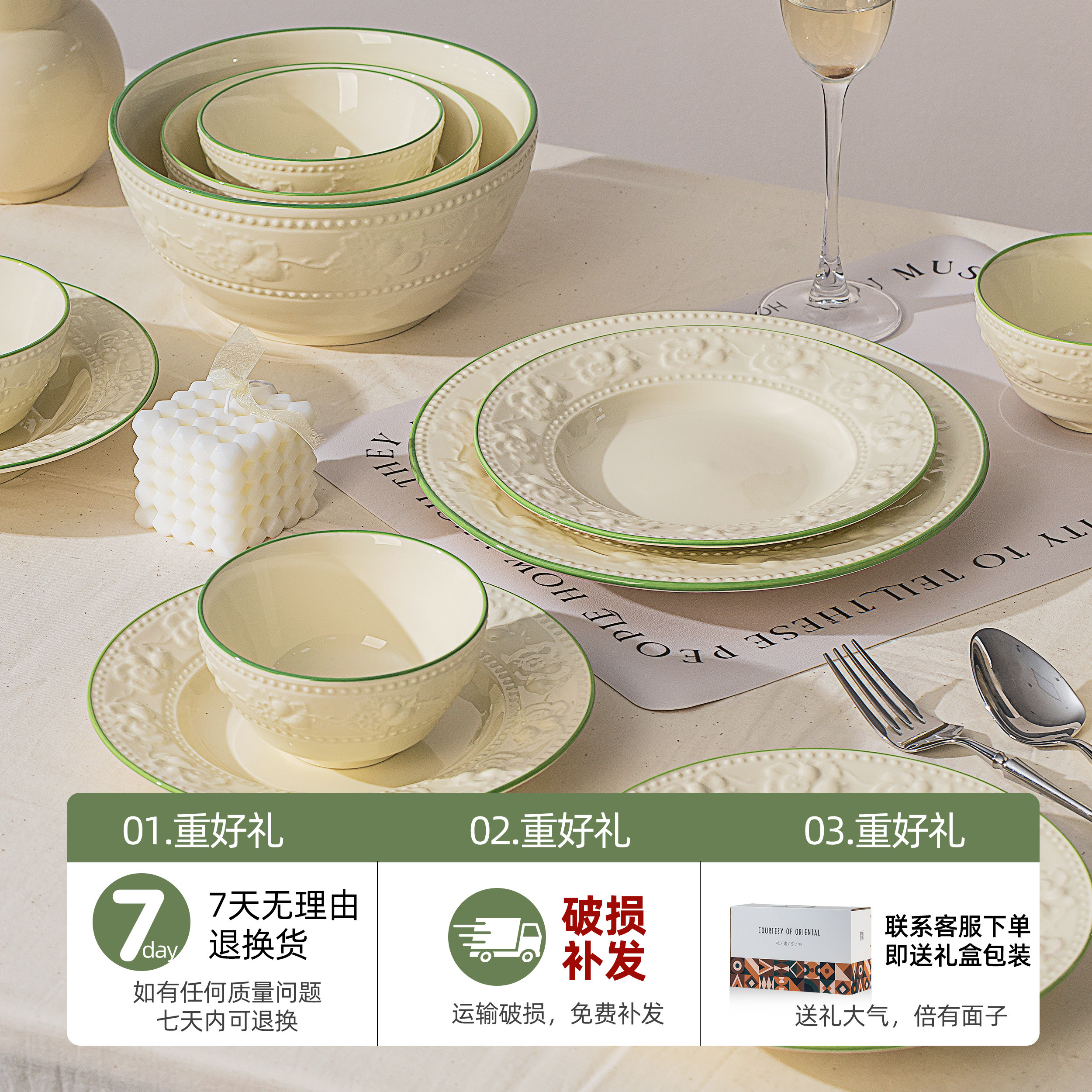 碗碟套装2025新款家用高颜值北欧风浮雕碗盘餐具套装新婚乔迁礼物