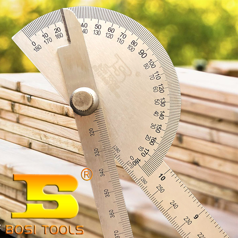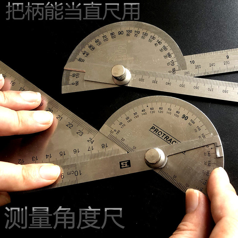 波斯角度尺不锈钢量角器多功能360度旋转数显角尺半圆盘规测关节