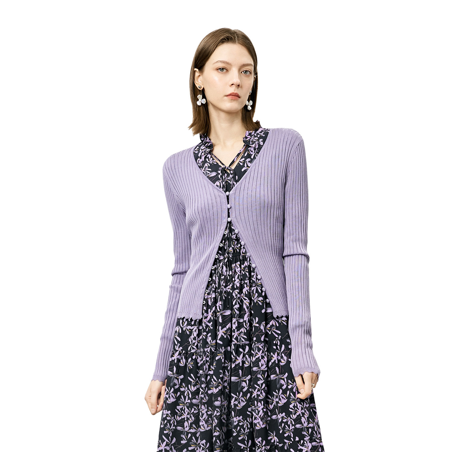 颜域天丝长袖针织开衫女2025新款秋季通勤修身百搭气质百搭小外搭