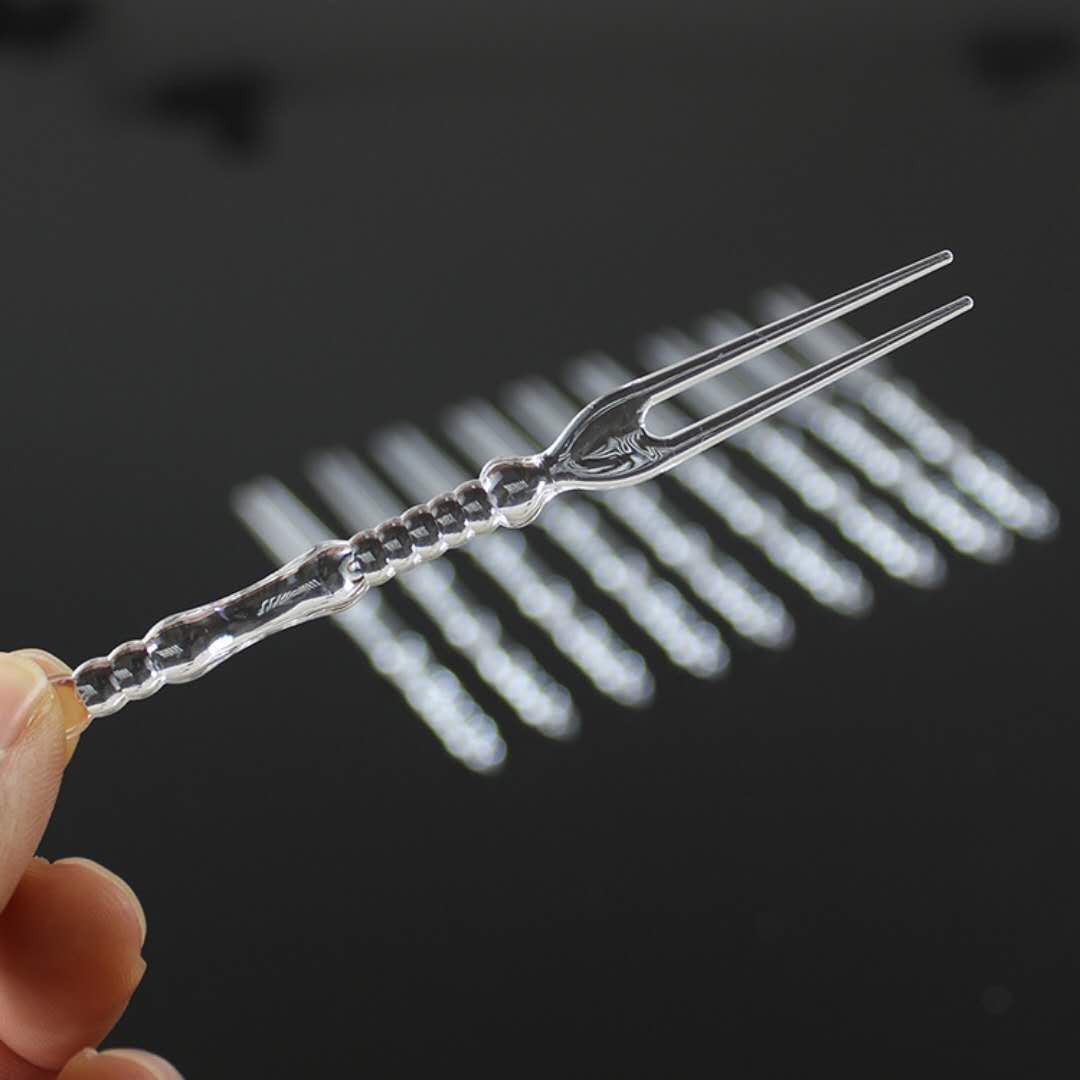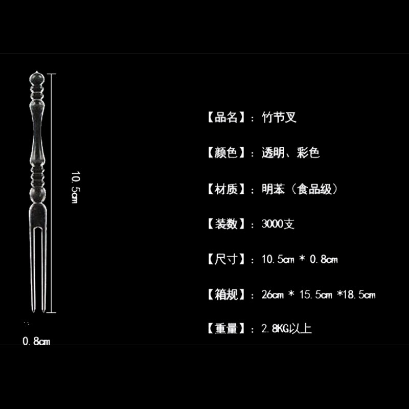 透明竹节水果两节叉蛋糕叉 一次性水果针塑料水果签 足数10.5cm