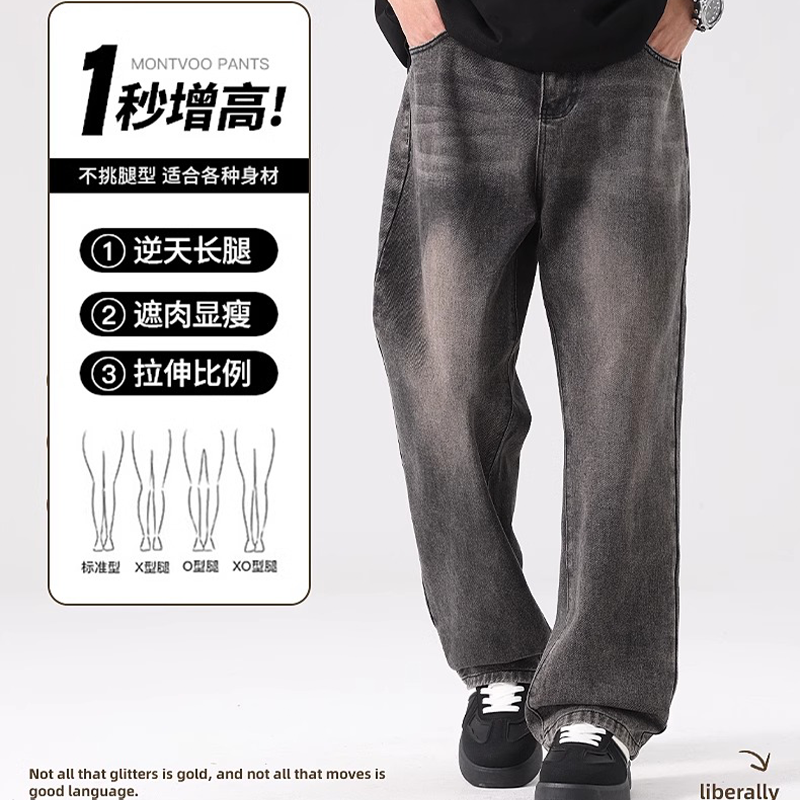 班尼路美式直筒牛仔裤男款高街痞帅男裤baggy风穿搭男牛仔长裤男C
