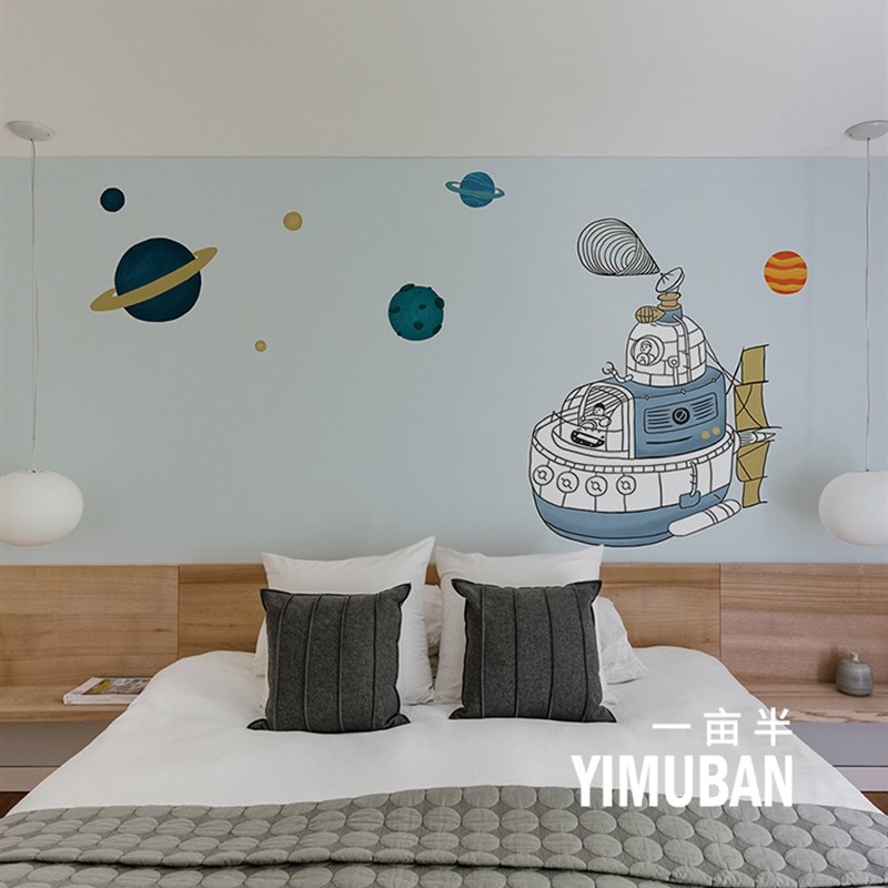 现代简约儿童房壁纸壁布星球宇宙飞船男女孩卧室床头背景墙纸墙布