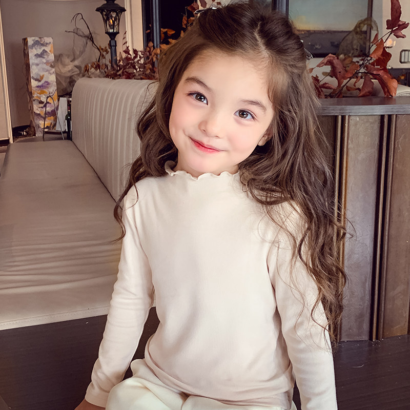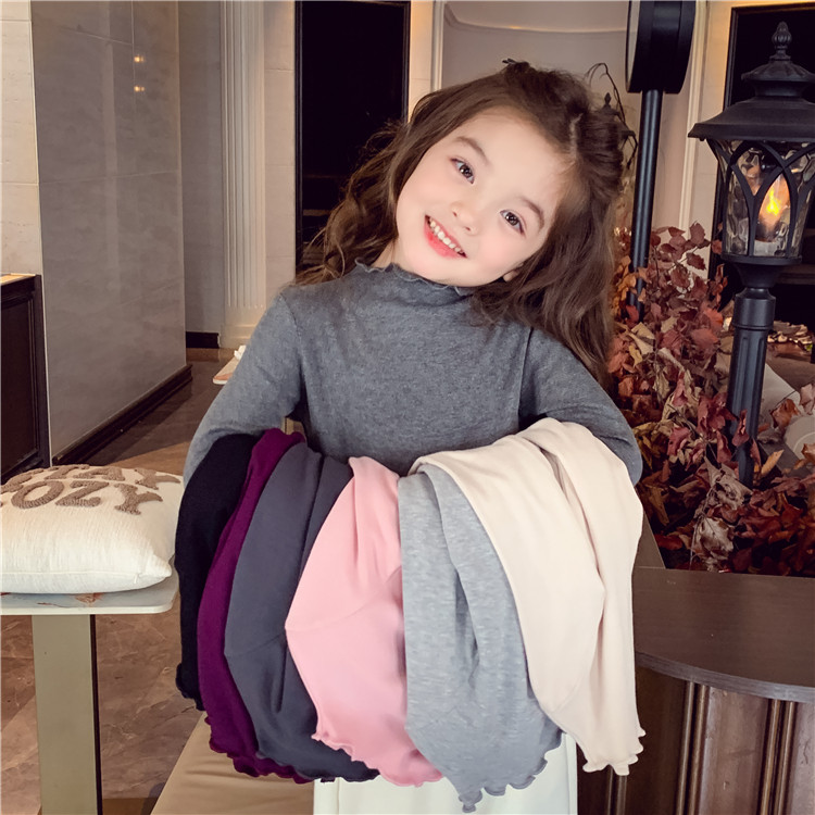 女童打底衫秋装2025新款洋气儿童花边半高领内搭上衣女孩纯色T恤