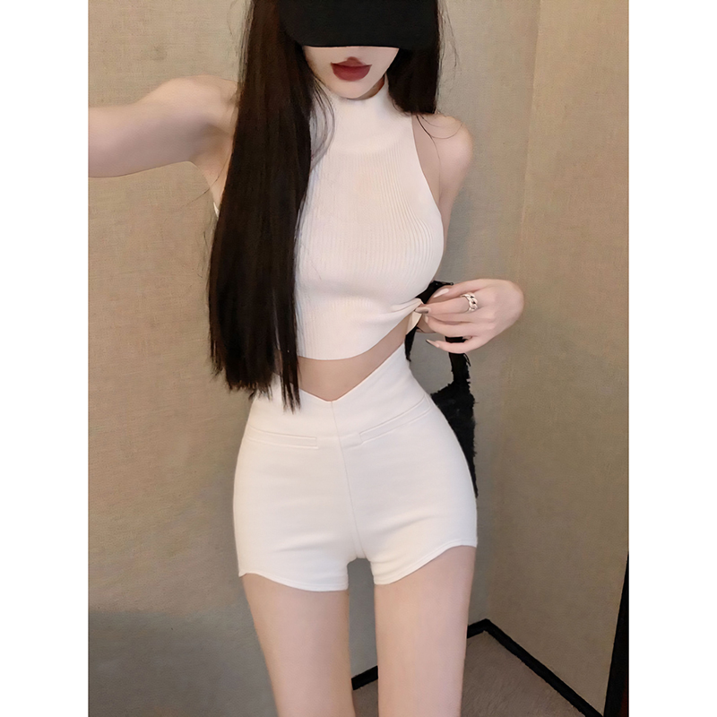 黑色高腰紧身短裤女2025夏新款韩版百搭辣妹不规则弹力显瘦休闲裤