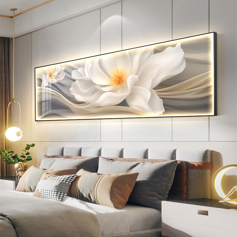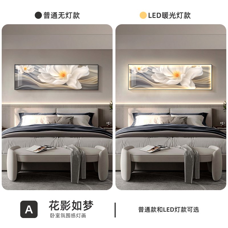 现代简约卧室床头装饰画高级感带灯挂画奶油风客厅主卧背景墙壁画