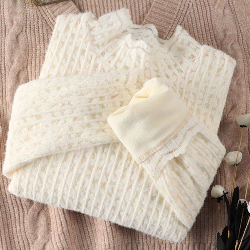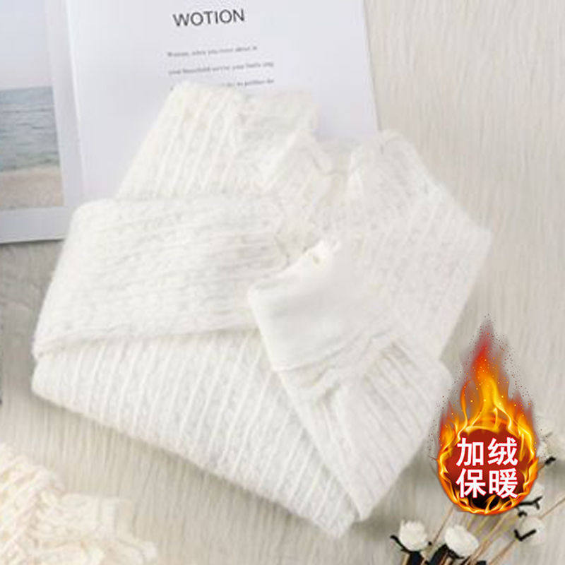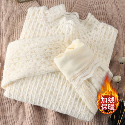 半高领加绒加厚蕾丝打底衫女秋冬新款洋气内搭磨毛小衫长袖上衣潮