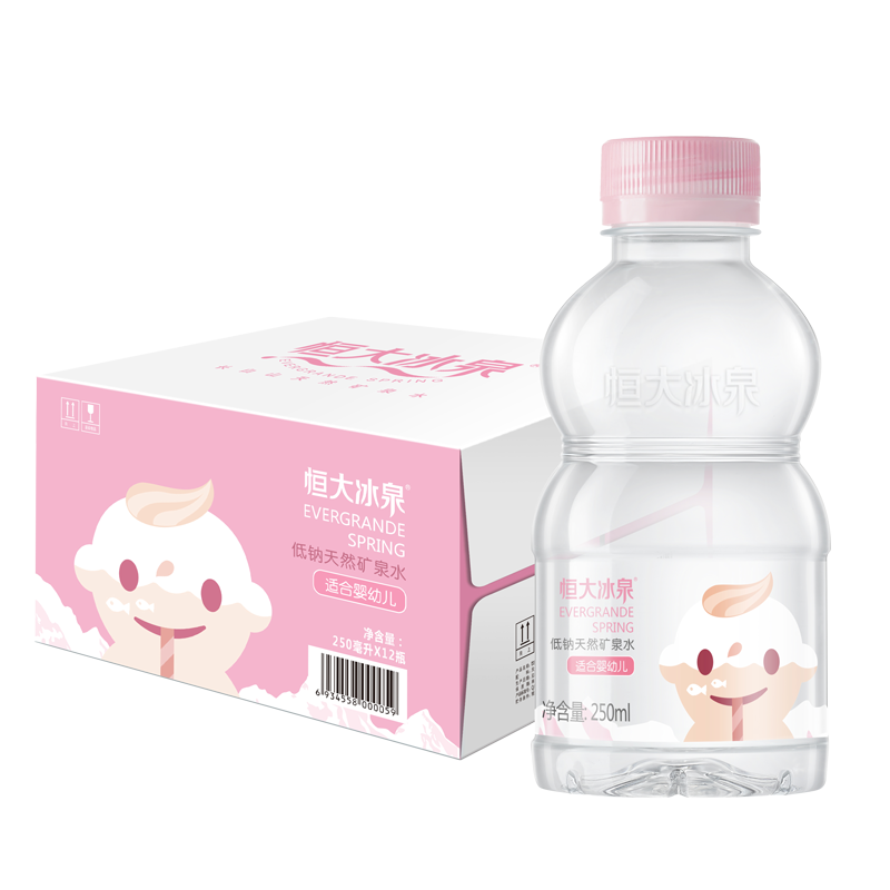 恒大冰泉宝宝水婴儿水长白山天然低钠矿泉水小瓶饮用水250ml*12瓶