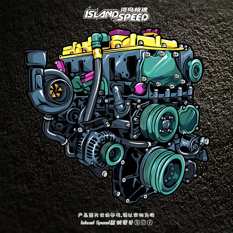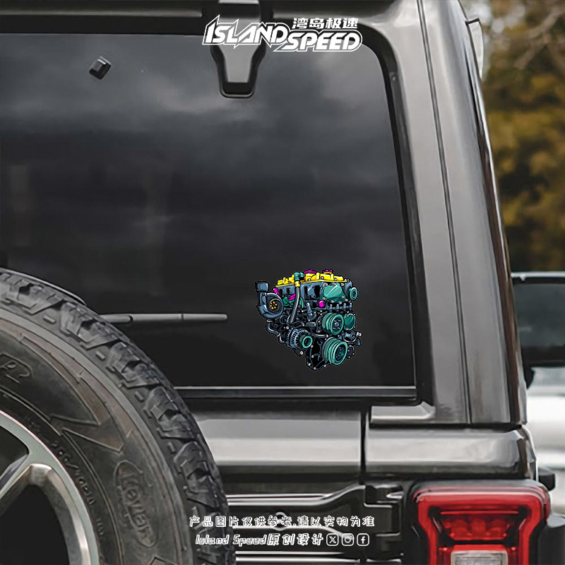 涡轮增压发动机汽车贴纸漫画色彩引擎盖水杯车尾装饰贴
