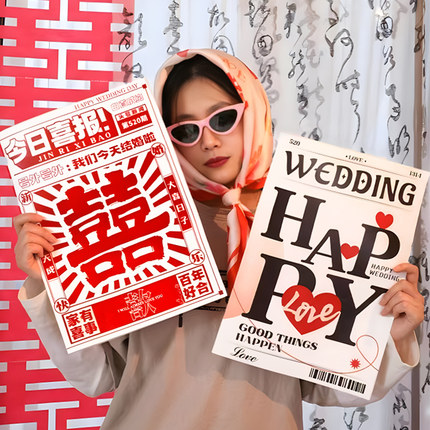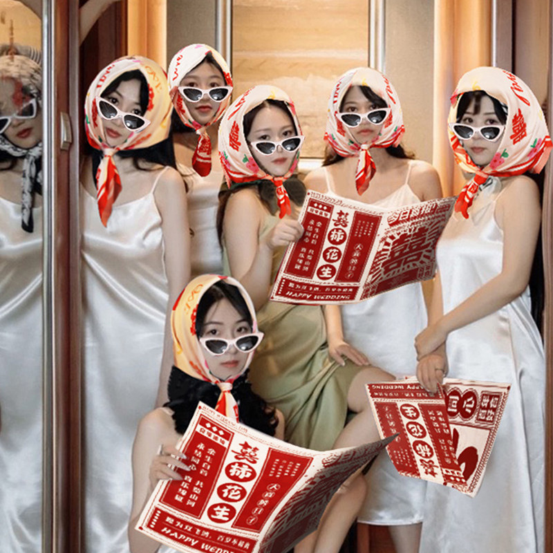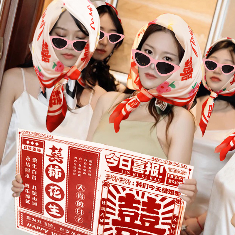 结婚礼拍照道具喜字报纸新娘眼镜丝巾伴娘姐妹团晨袍拍摄用品大全
