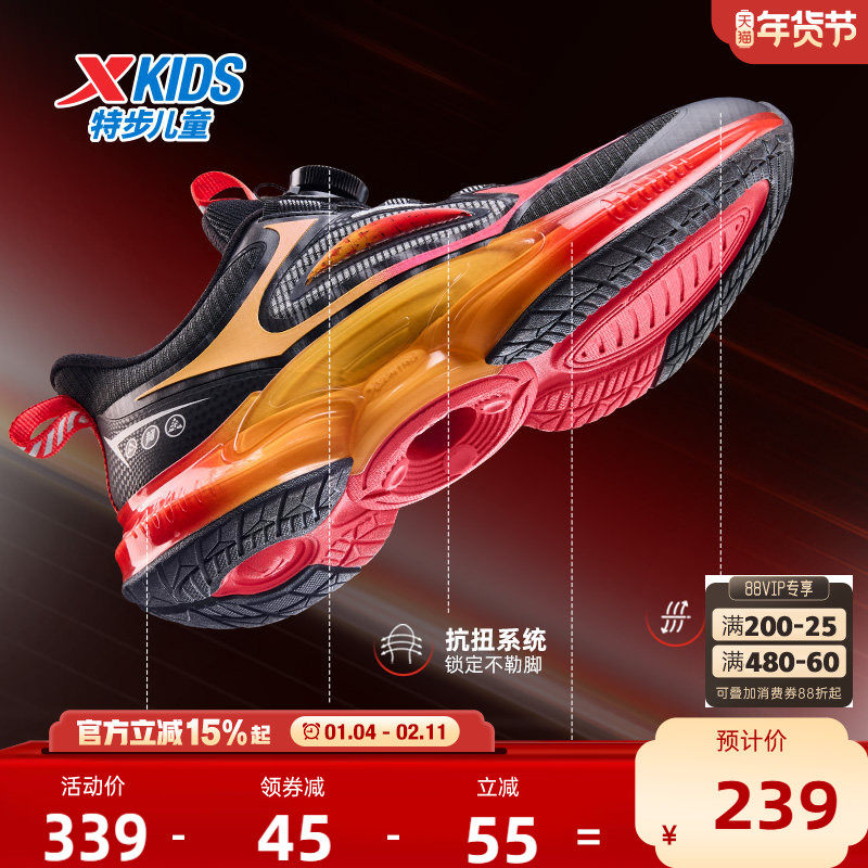 特步儿童运动鞋UFO6.0纽扣跑鞋