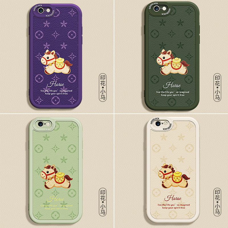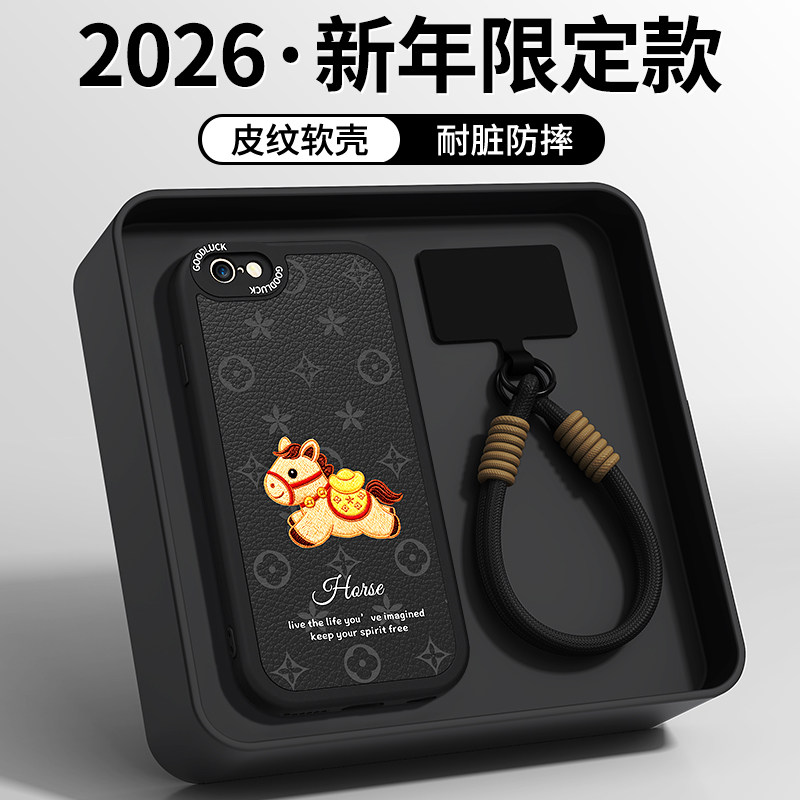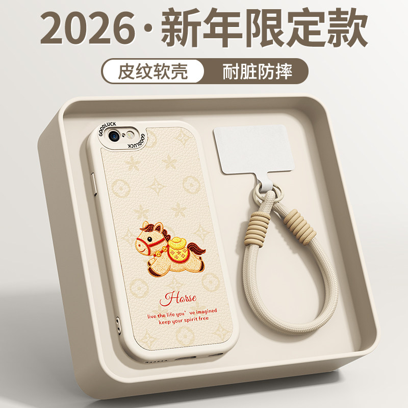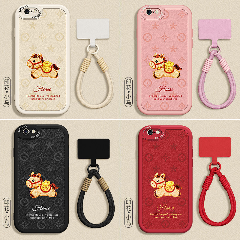新年印花小马适用苹果6手机壳6S/6Plus/6SPlus新款iPhone六ip小羊皮硅胶i保护套红色2026马年sp防摔男女外壳