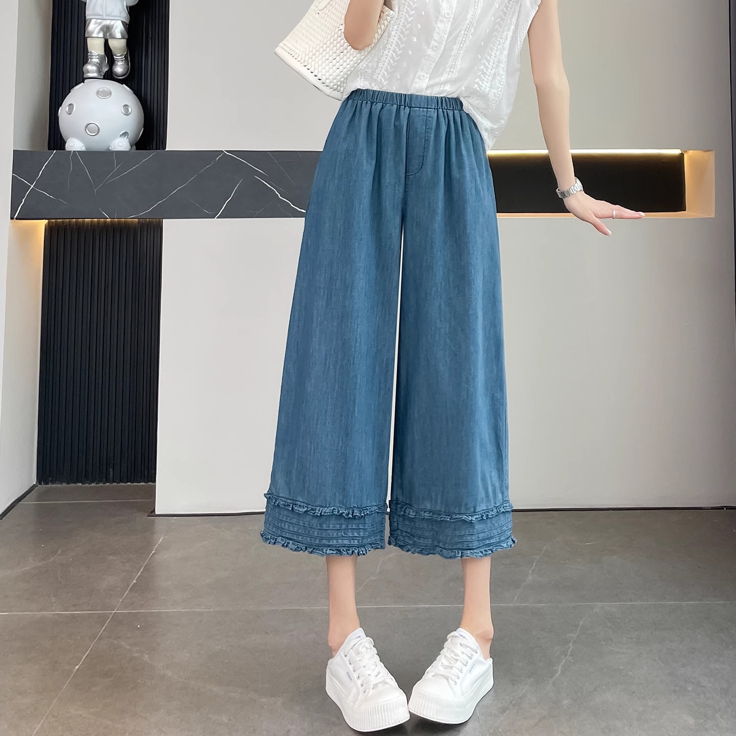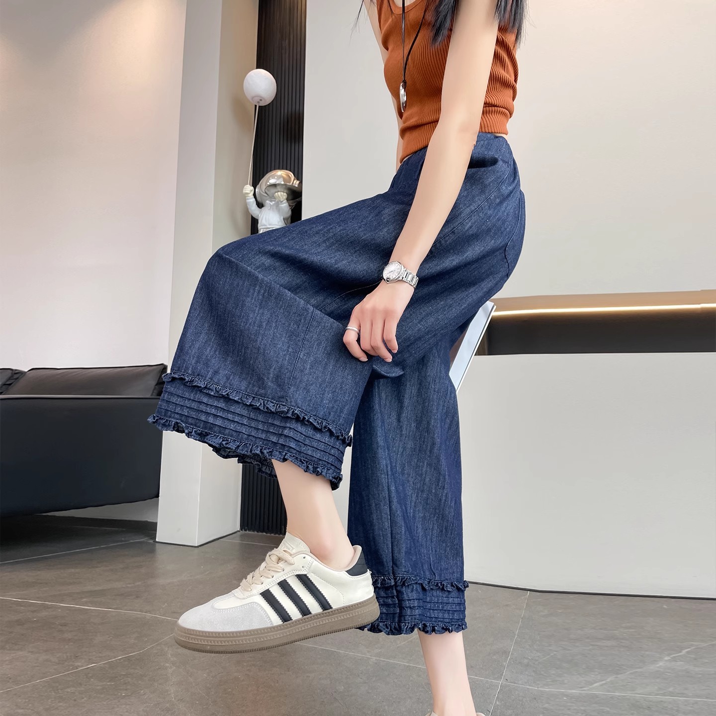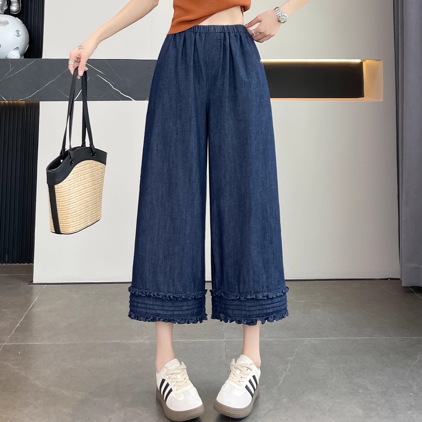 2025年夏季新款宽松阔腿牛仔女七分裤女蓝色高腰显瘦百搭松垮中裤