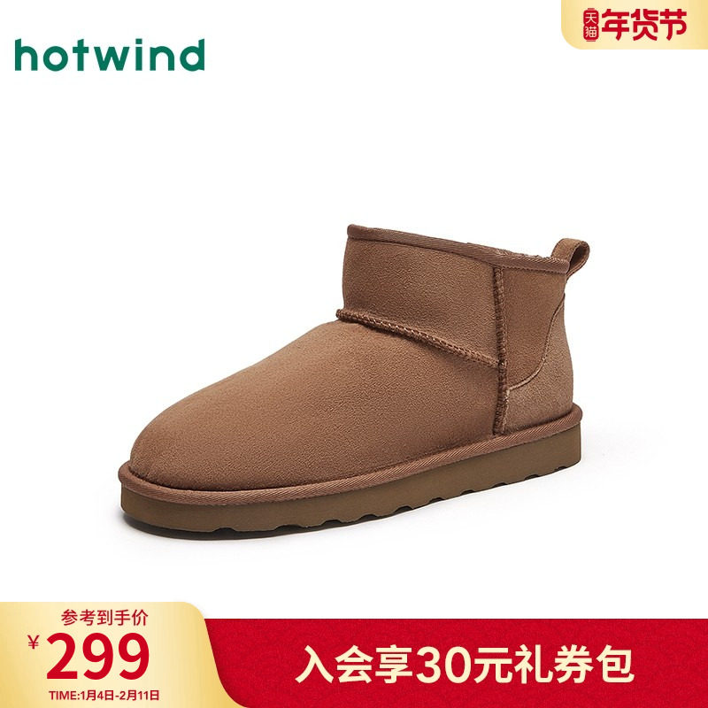 热风男鞋冬季新款男士时尚棉靴加绒保暖皮毛一体舒适雪地靴子