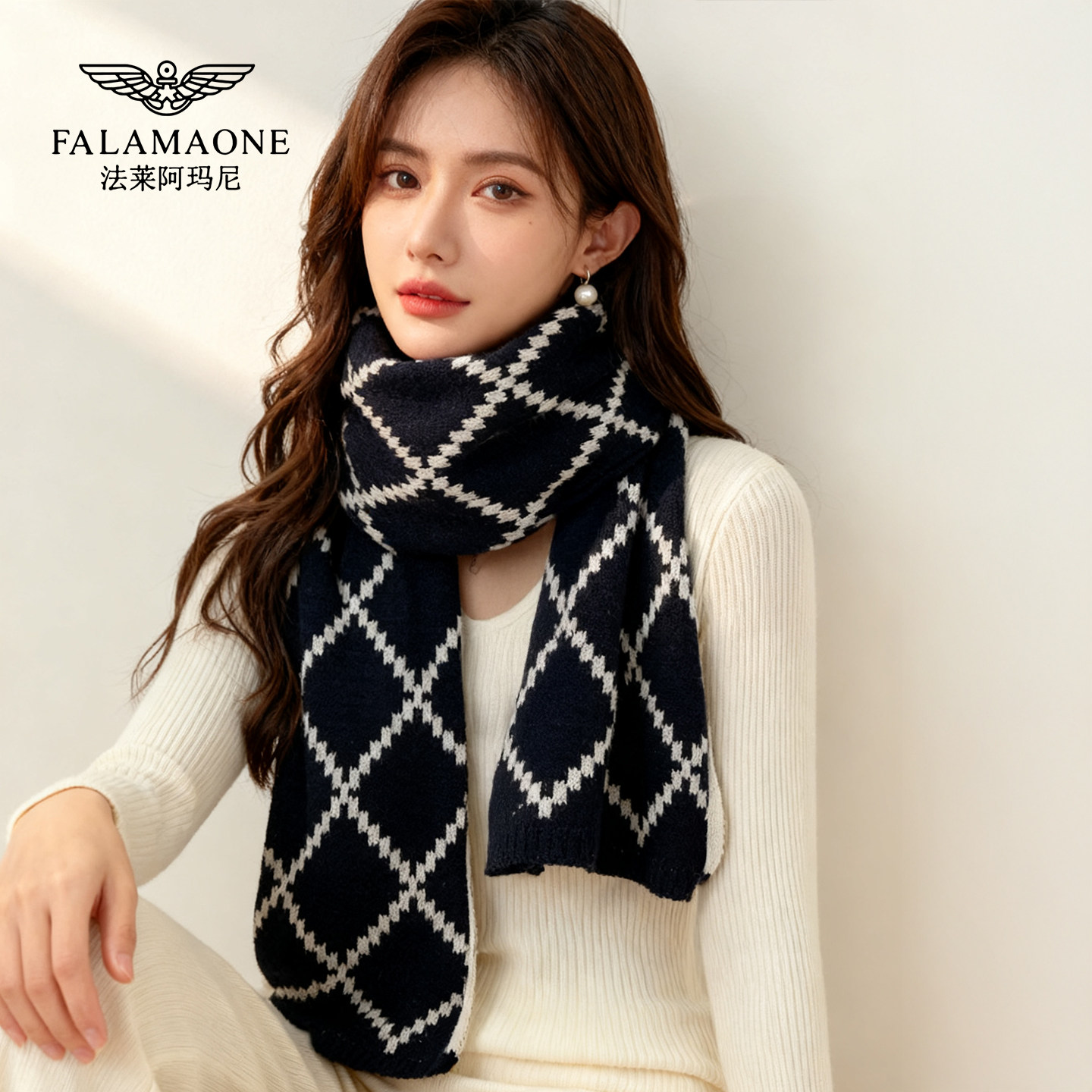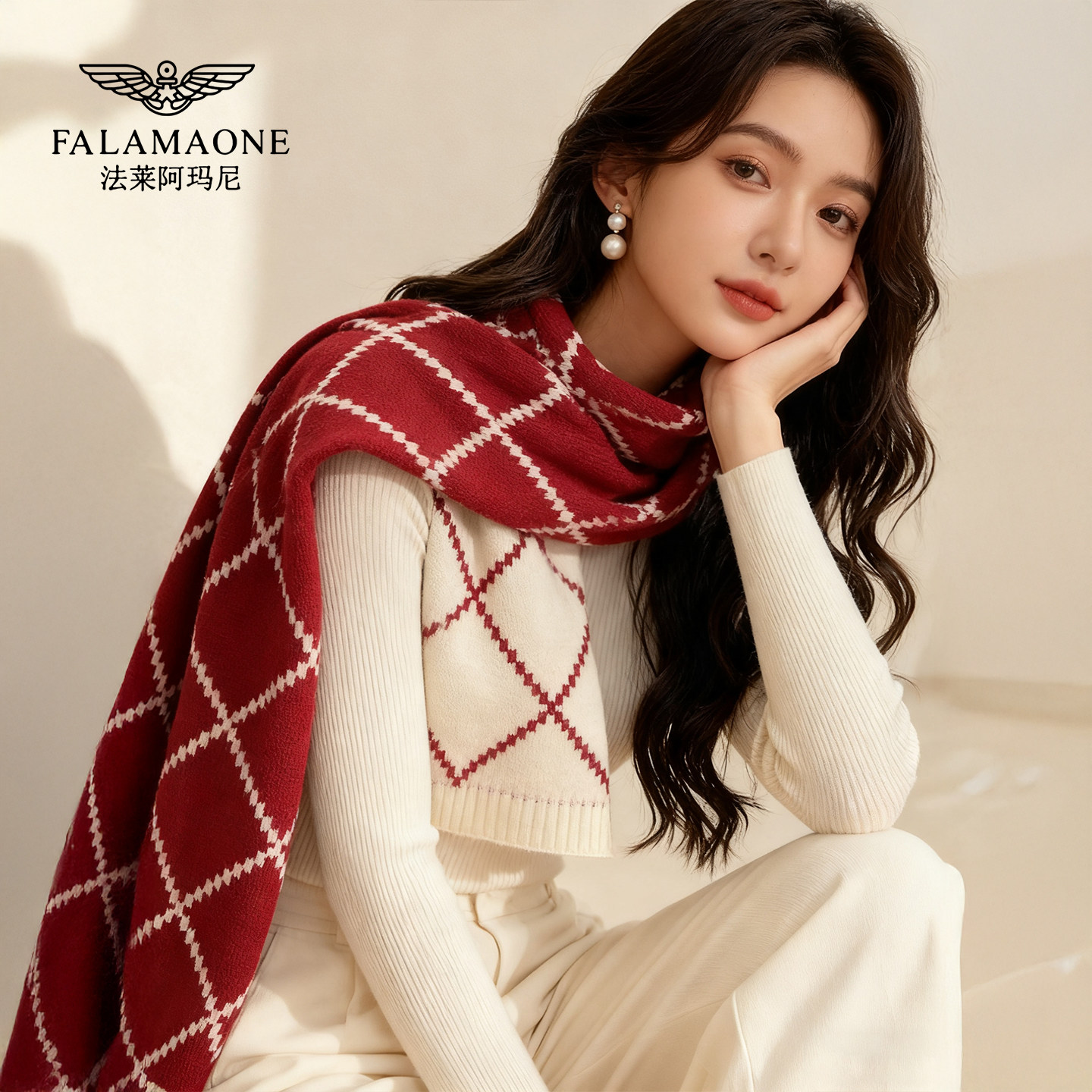 法莱阿玛尼新款红色围巾女友礼物