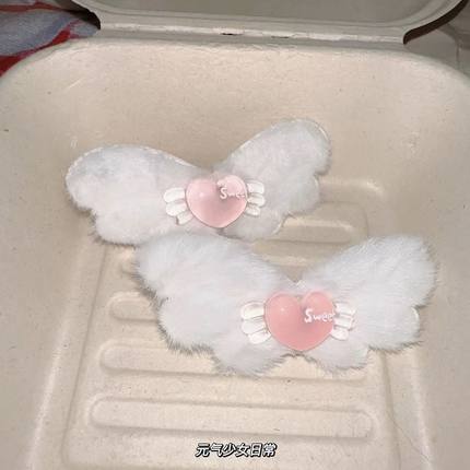 毛绒透明爱心小翅膀天使粉嫩嫩边夹发夹可爱少女心头饰y2k对夹