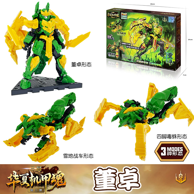 三国机甲魂变形骨架拼装积木人吕布曹操董卓六合体机器人男孩玩具