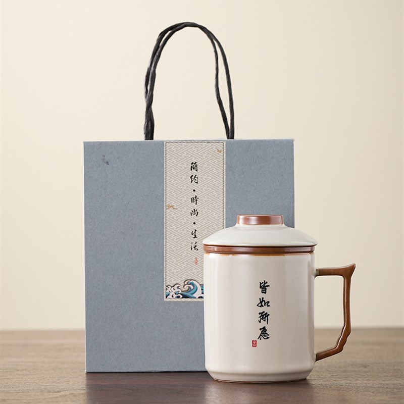 大容量带盖陶瓷茶杯,茶分离器,茶水分离杯,会议室,个人茶杯定制