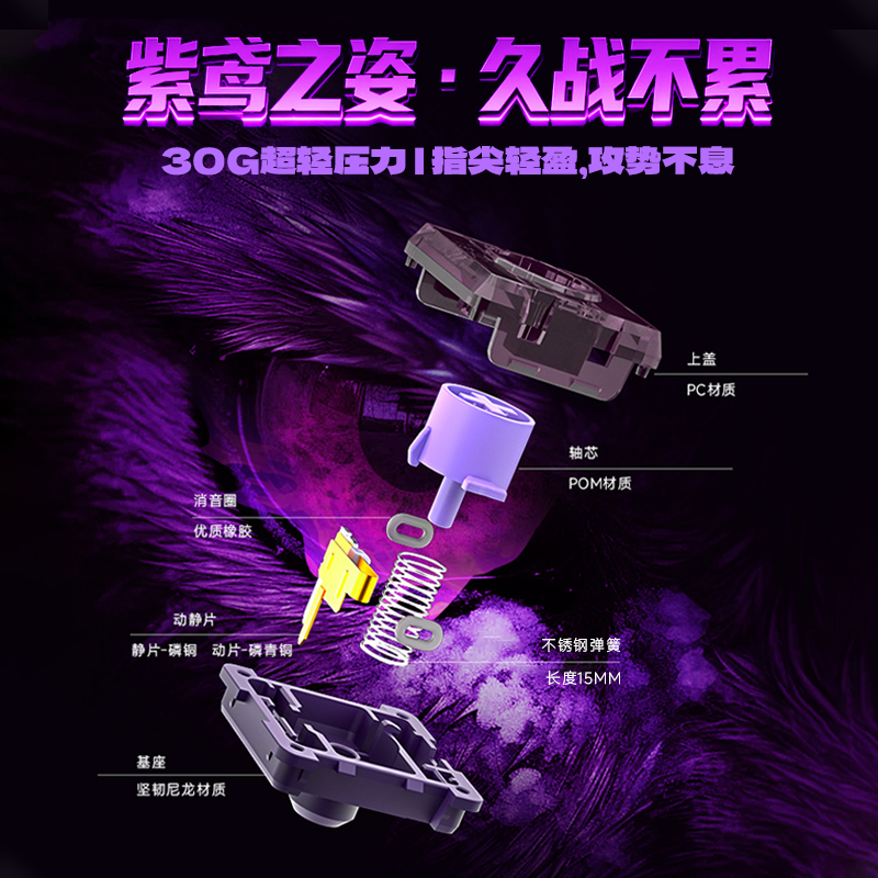 凯华kailh紫鸢轴线性快触发静音轴体猛禽系列适配HITBOX 矮轴键盘