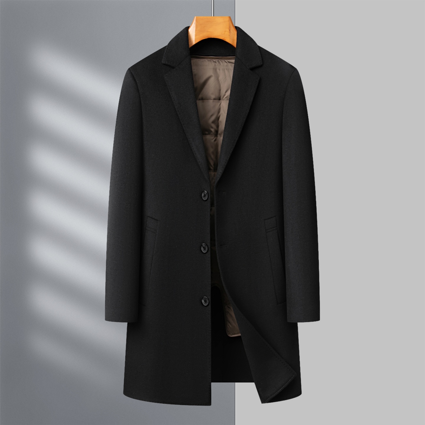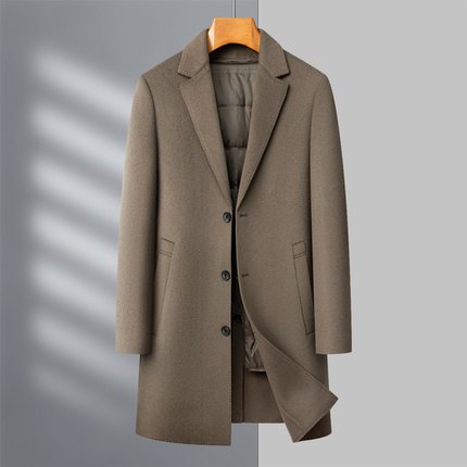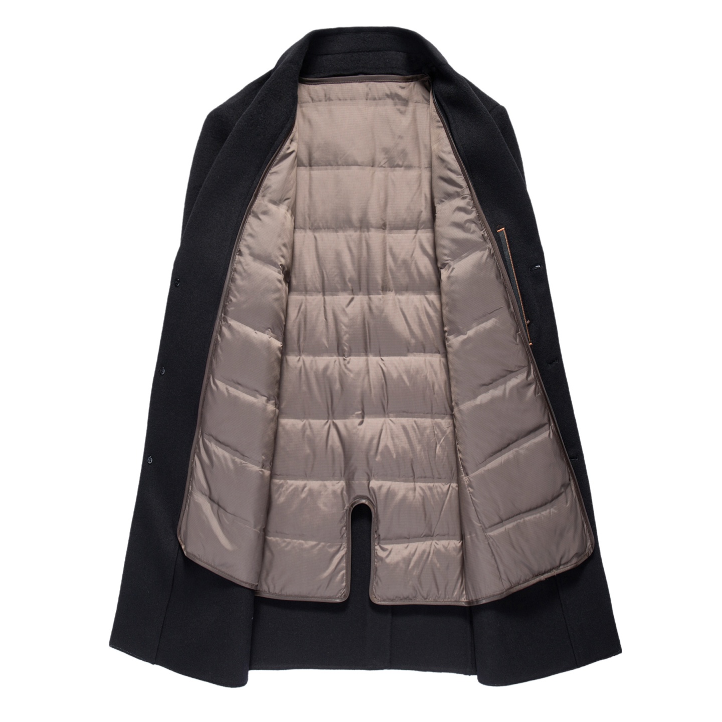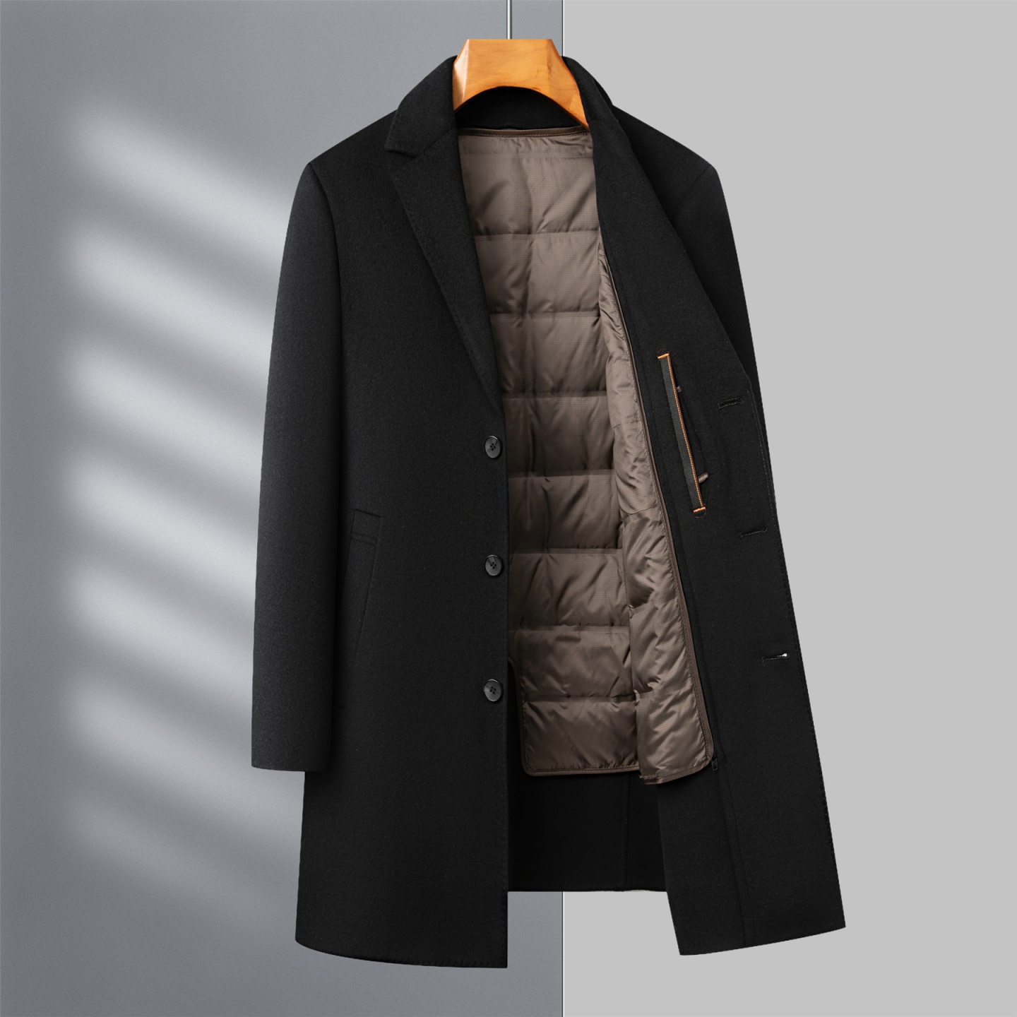 BOSS双面羊毛大衣男长款高级感冬装可脱卸羽绒内胆西装领毛呢外套