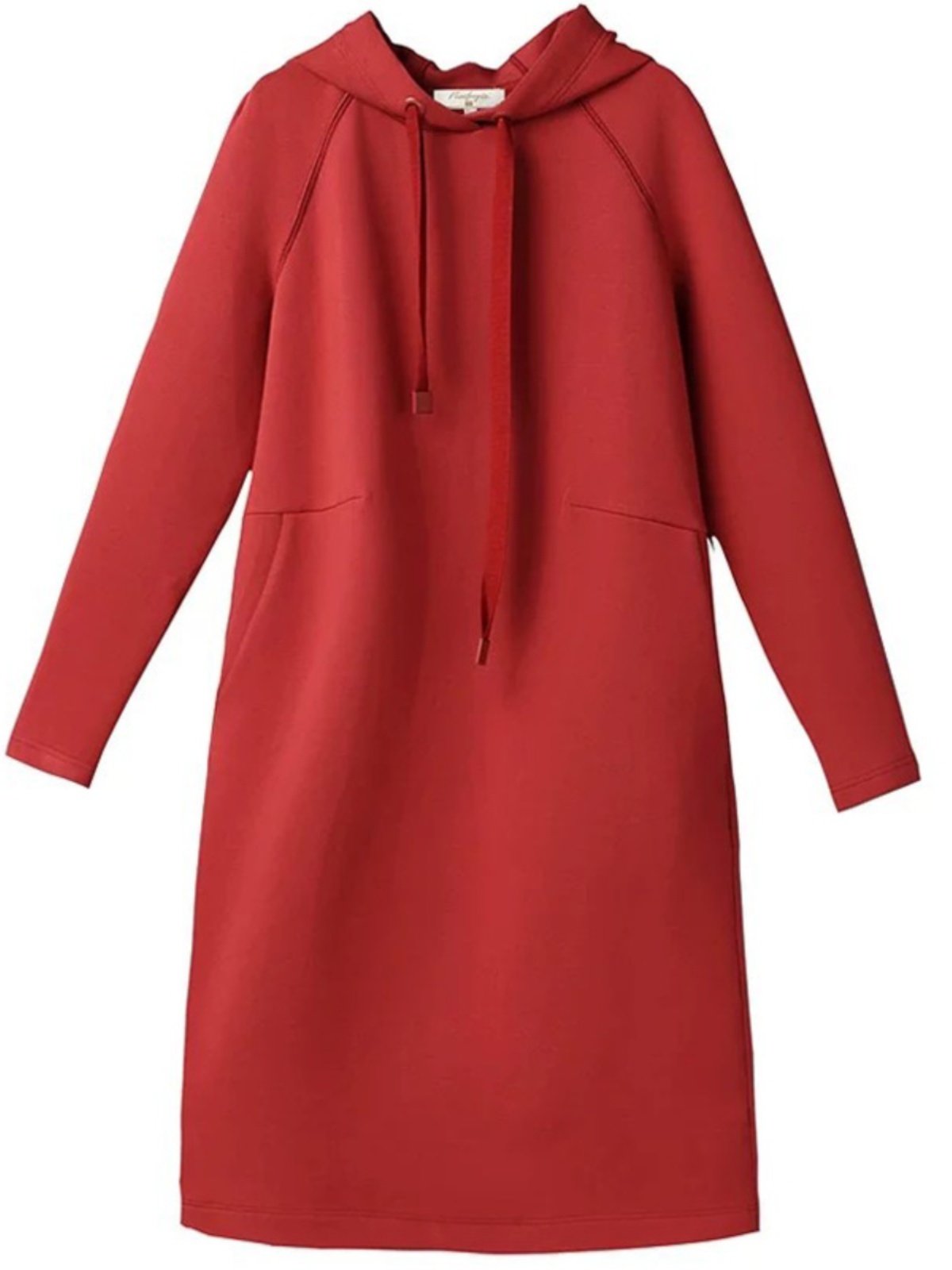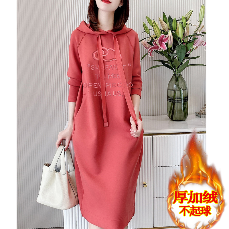 高档100%纯棉设计感小众秋冬女装连衣裙宽松连帽加绒中长款卫衣裙