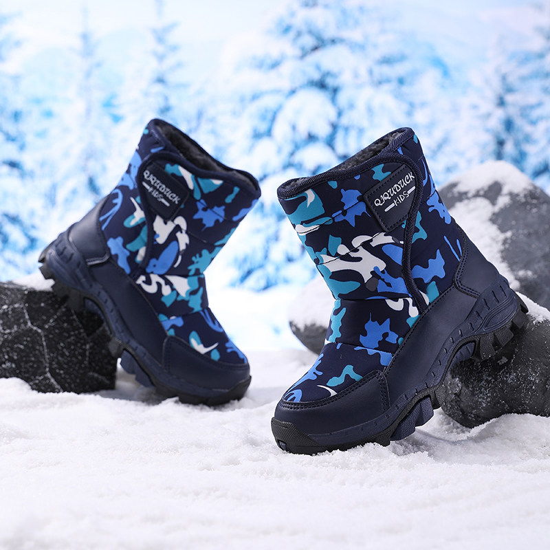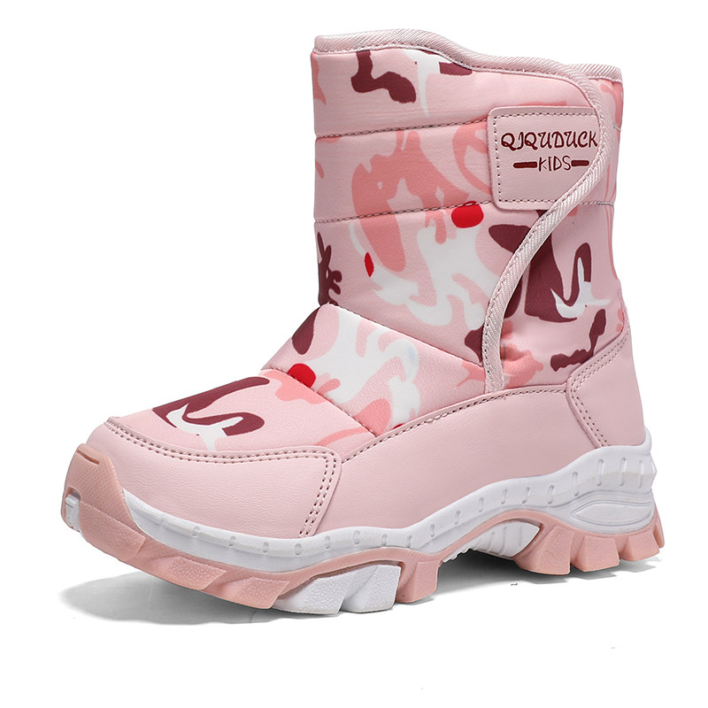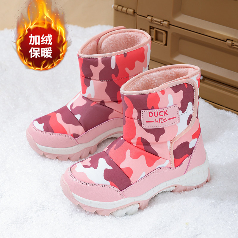 小黄鸭女童雪地靴2025冬季儿童加绒保暖防滑防水女孩中大童棉鞋子