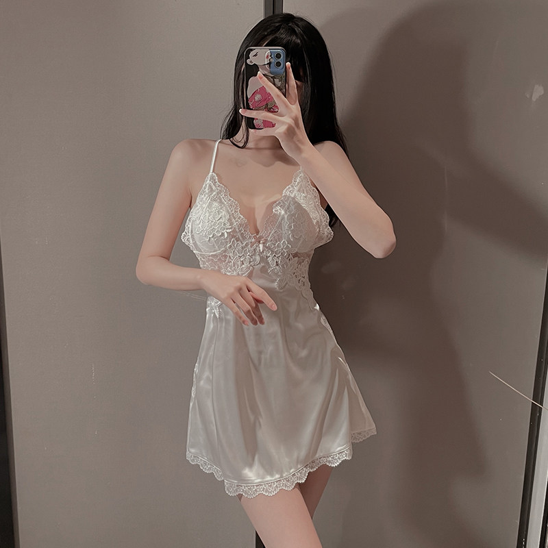性感睡衣女夏天冰丝2024年新款带胸垫蕾丝吊带睡裙套装睡袍纯欲