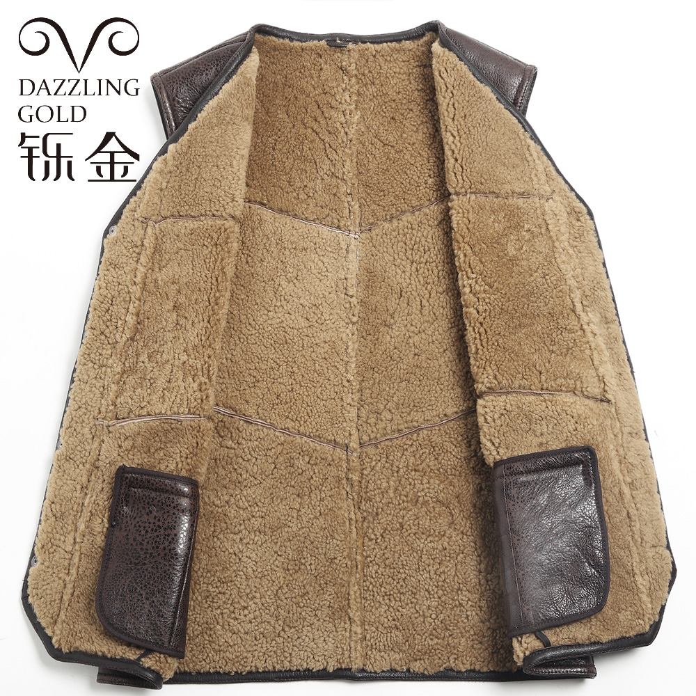 铄金冬季进口皮毛一体V领马甲真皮衣男款加厚马夹坎肩羊羔毛背心