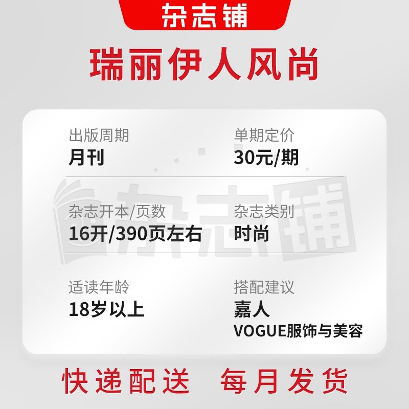 瑞丽伊人风尚杂志 2026年1月起订 杂志铺 全年订阅 女士服饰造型设计时尚达人美容护肤美体塑形服装搭配时尚时装期刊杂志