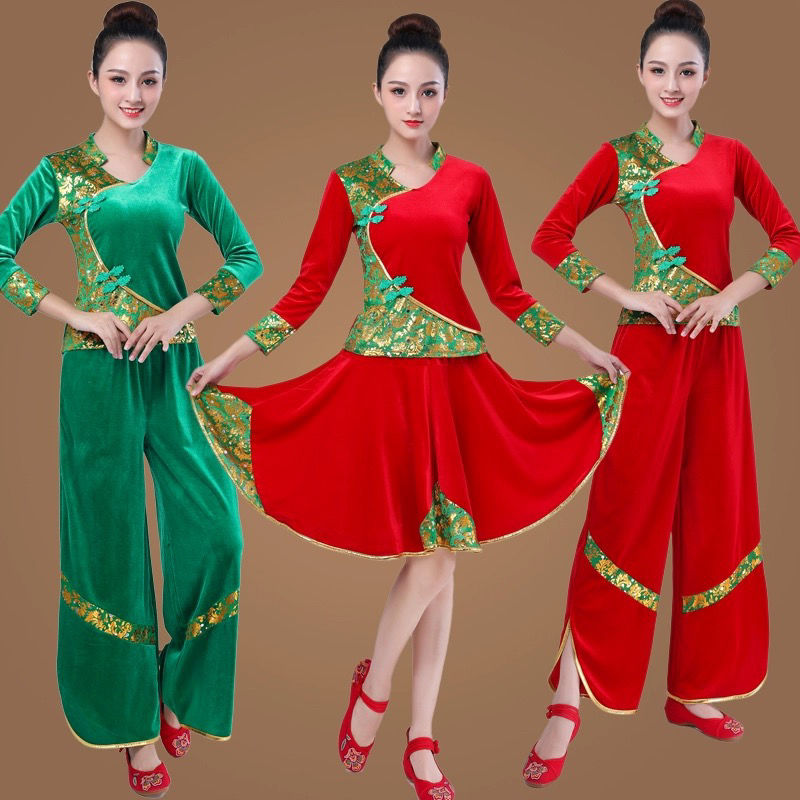 广场舞服装秋冬新款套装金丝绒套裙民族风中老年秧歌舞蹈演出服装