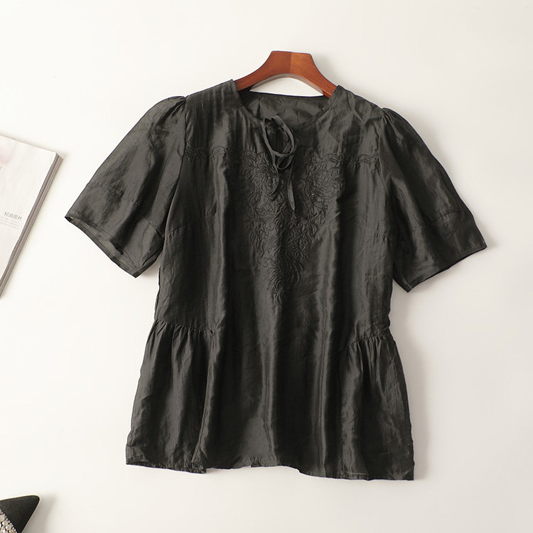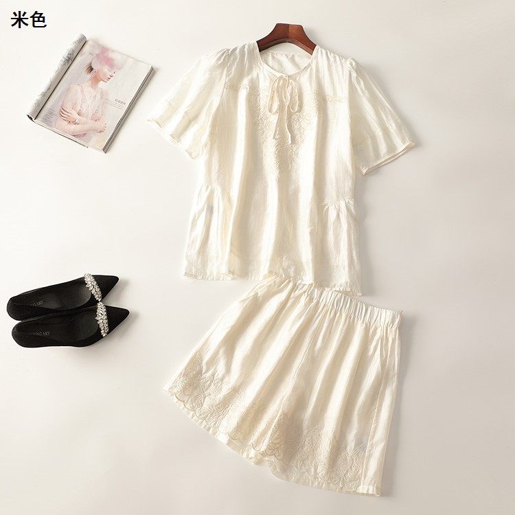 245544 夏短款V领五分袖上衣裤子套装肩膀处小洞