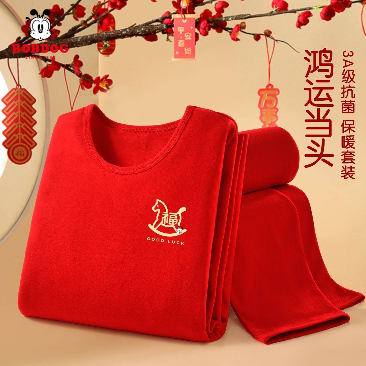 巴布豆儿童秋衣秋裤套装2026新款加厚男童马年本命年纯棉保暖内衣