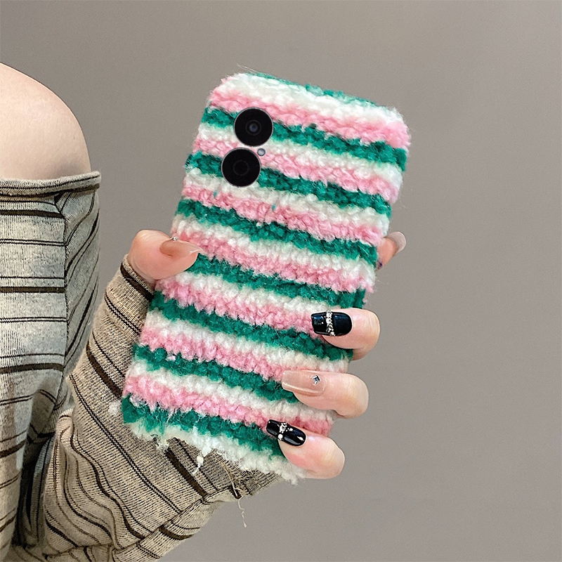 ins风彩色线条适用华为畅享70pro手机壳60x条纹优畅享50plus撞色20se秋冬季0e畅想z毛绒9e毛茸茸5g麦芒9硅胶8
