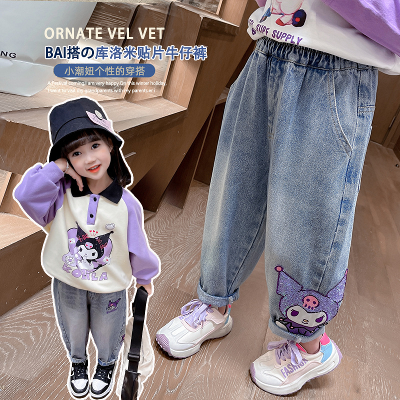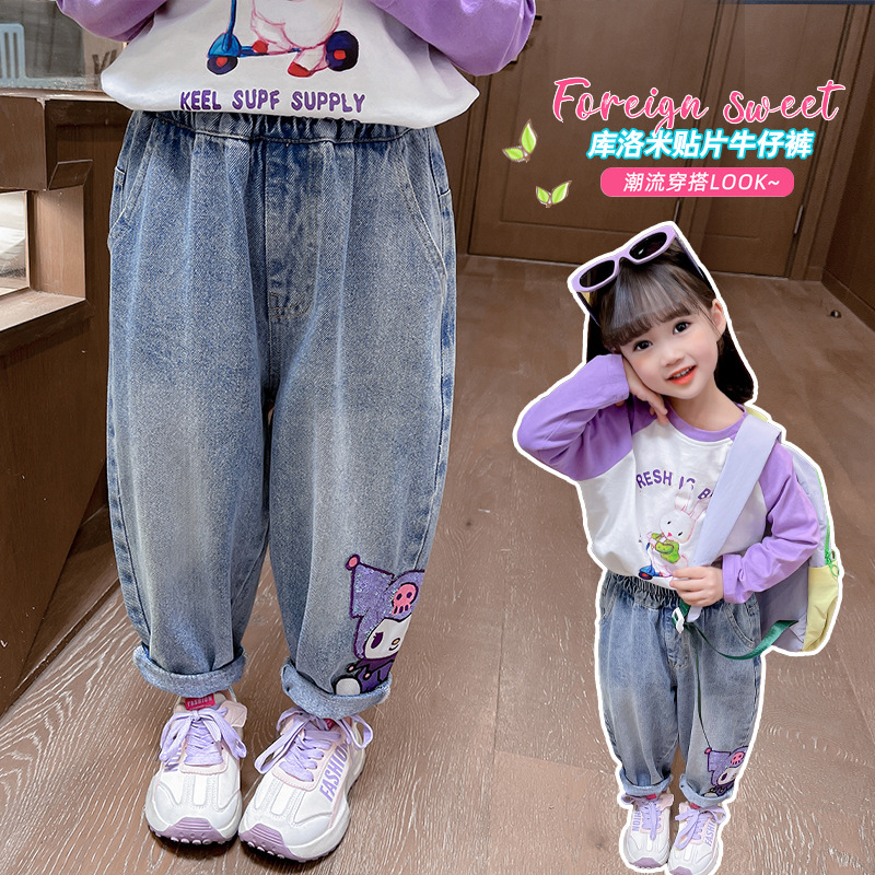 春秋新款儿童库洛米卡通牛仔裤