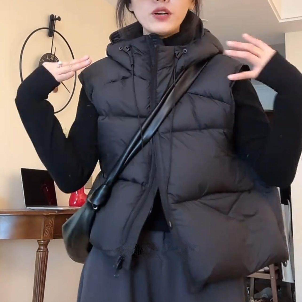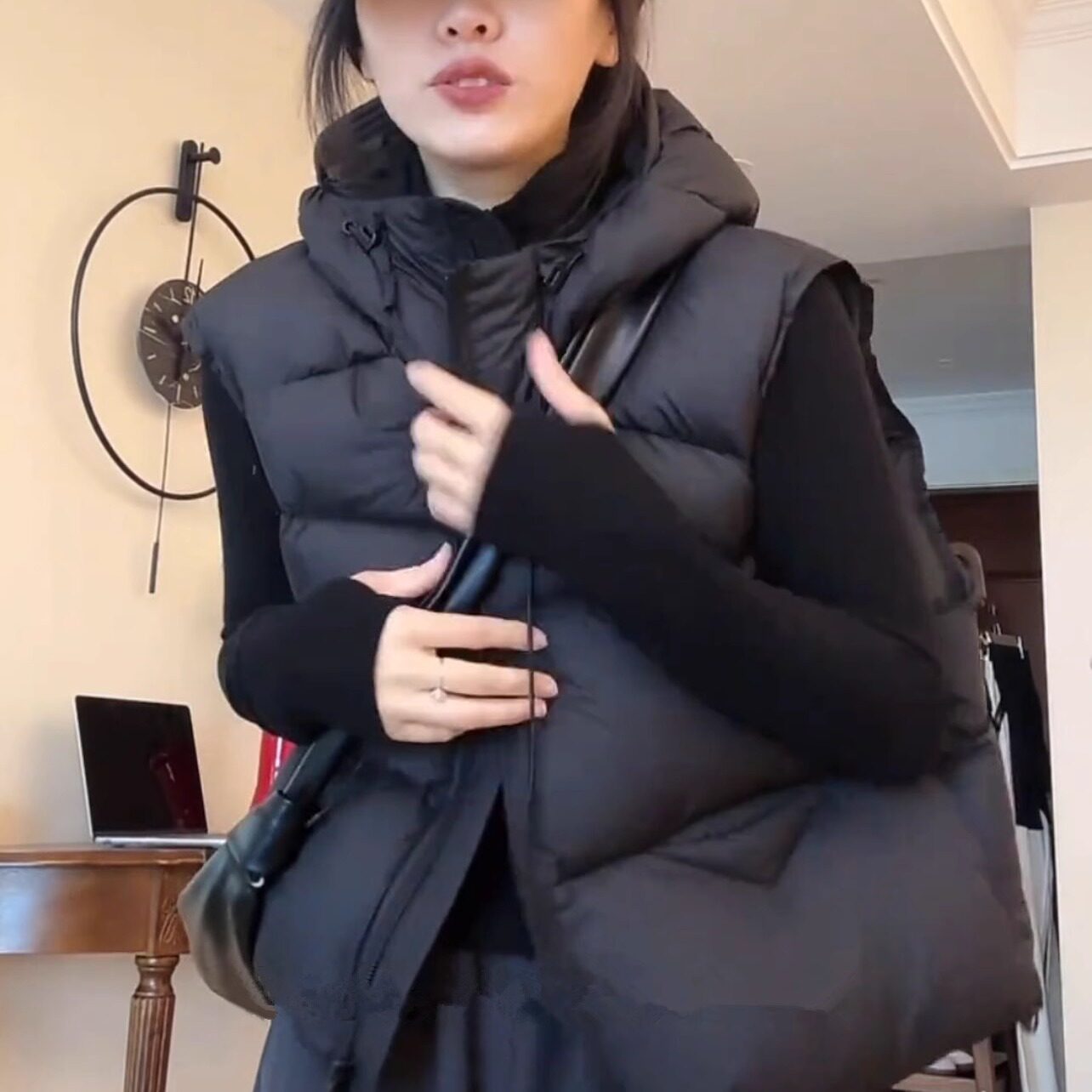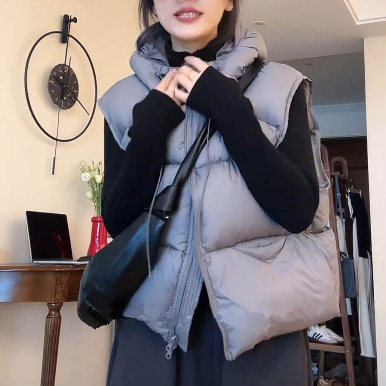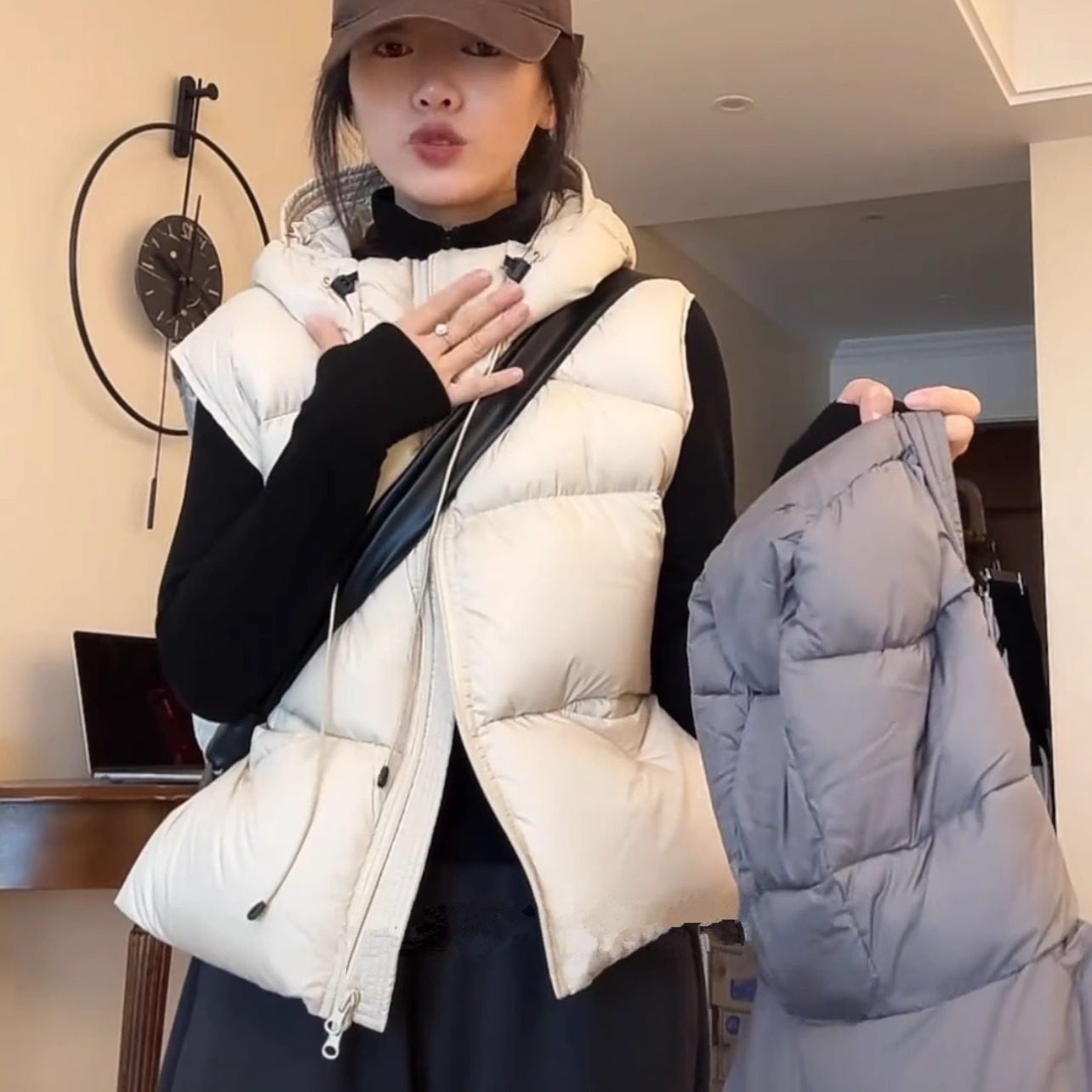 白鸭绒羽绒马甲女短款连帽背心冬季新款2025宽松高级感小个子坎肩