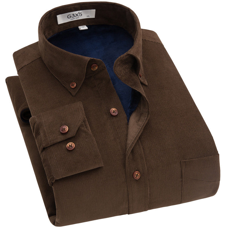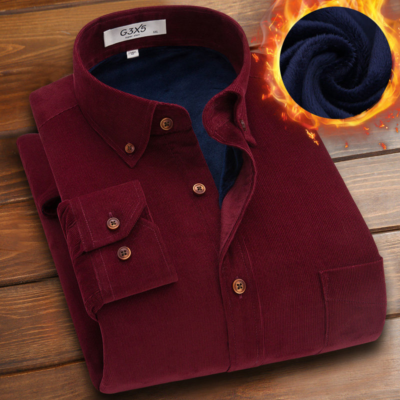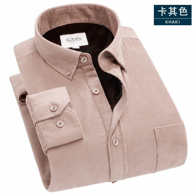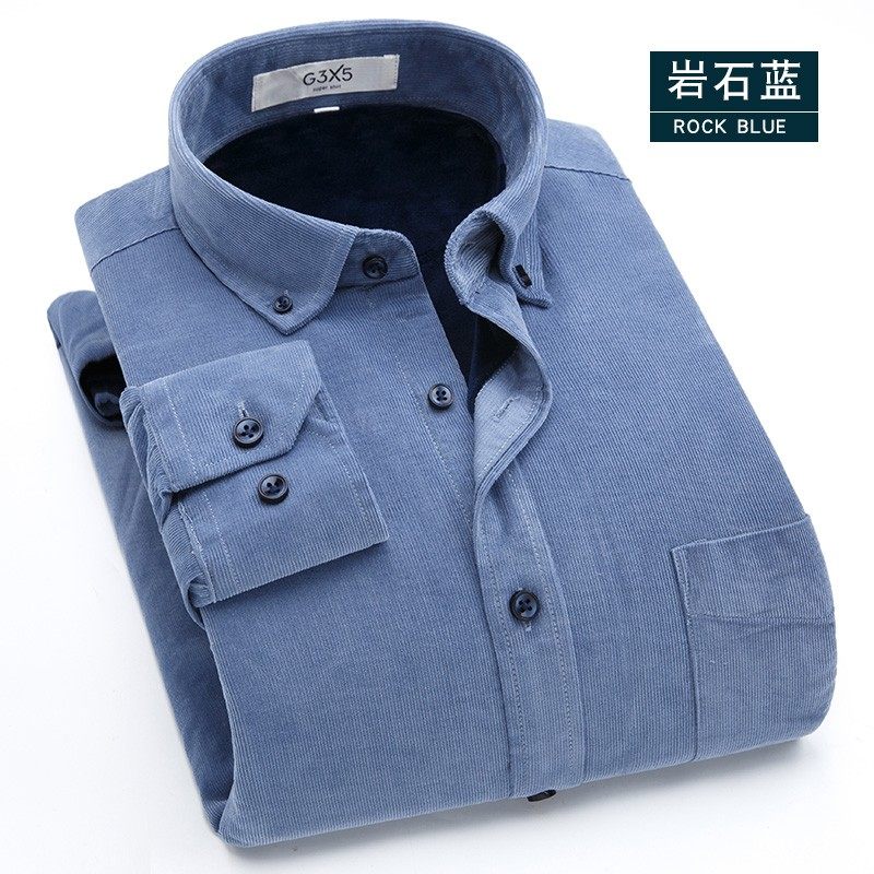 秋冬新款纯棉保暖衬衫男长袖灯芯绒加绒加厚磨毛条绒修身全棉衬衣