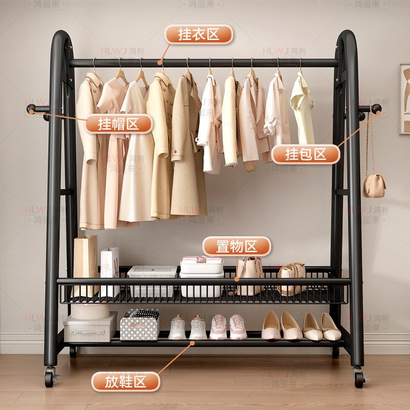 简易衣帽架落地室内房间挂衣架子可移动晾衣架家用卧室衣服收纳架