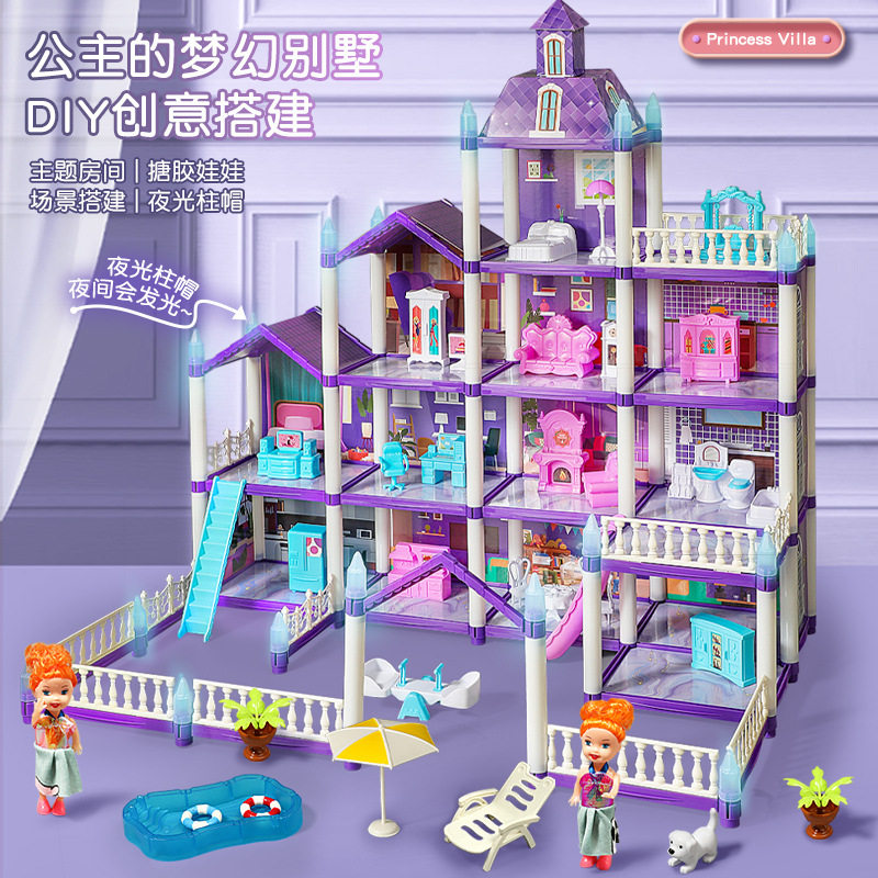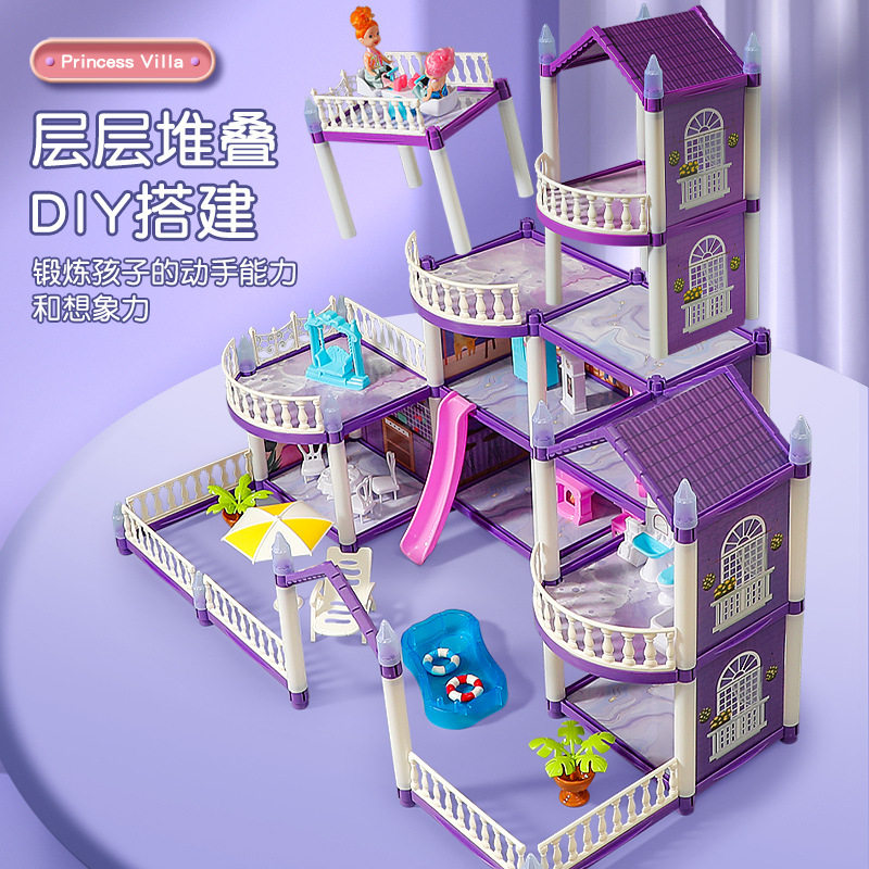 多层公主城堡娃娃屋拼装女童玩具