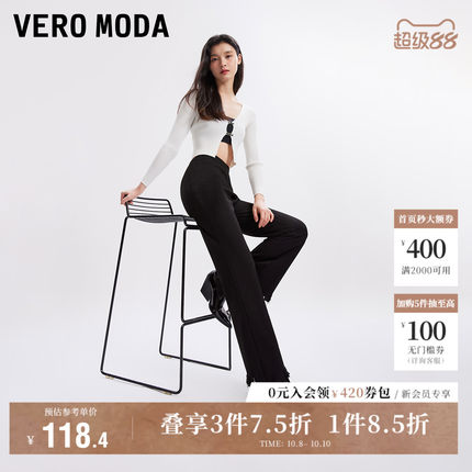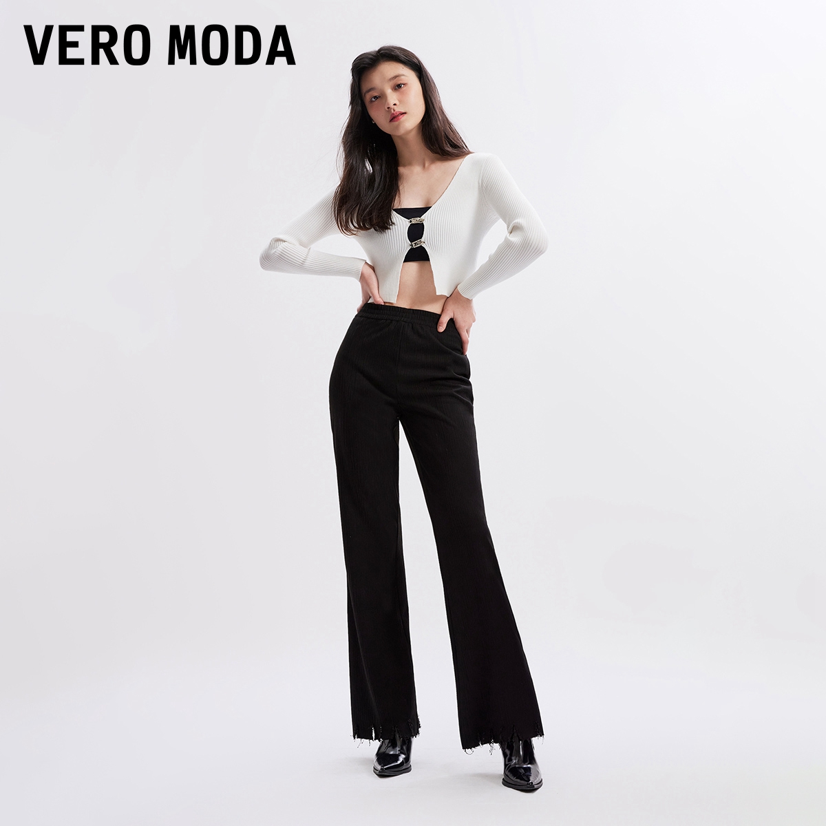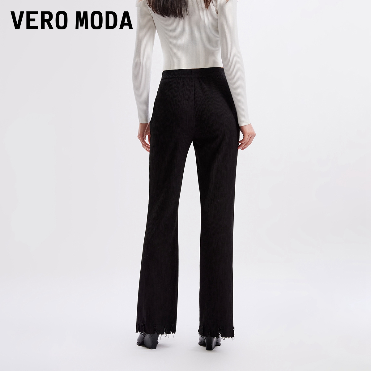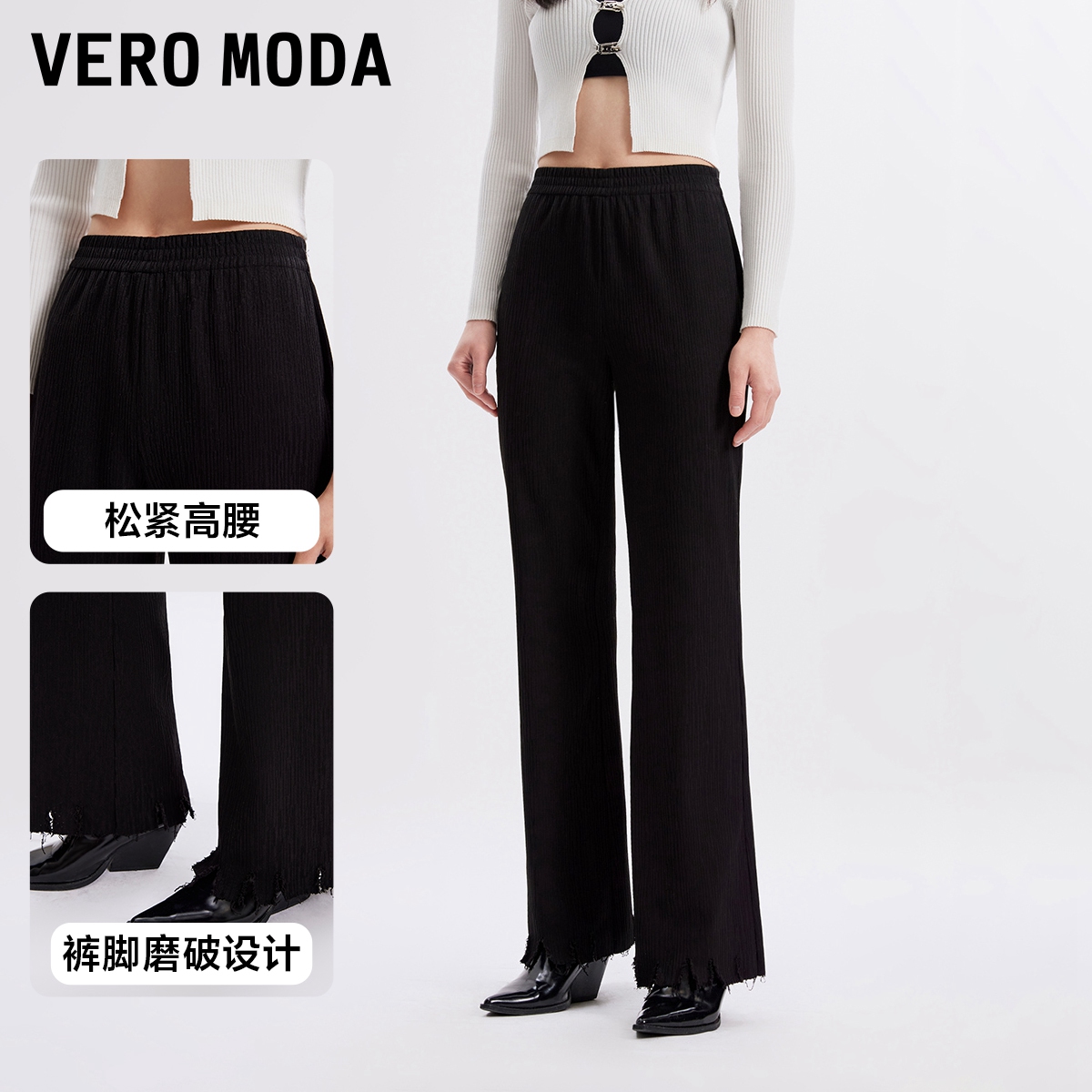 Vero Moda奥莱休闲裤女春秋新款松紧高腰微喇纹理感长裤子流行