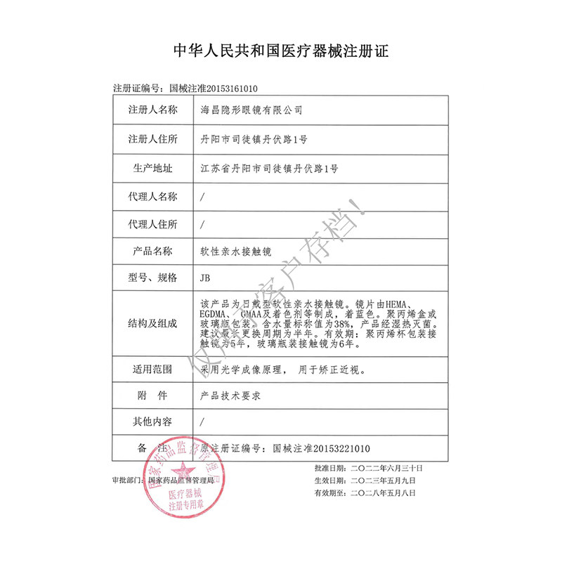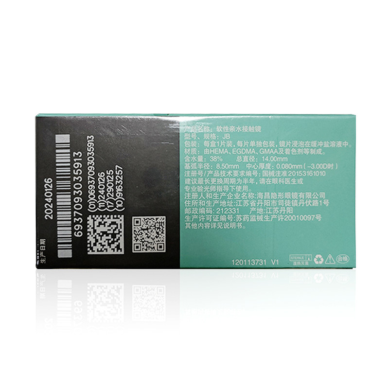 海俪恩隐形近视眼镜水动力半年抛1片盒装水润舒适2季抛透明蓝片