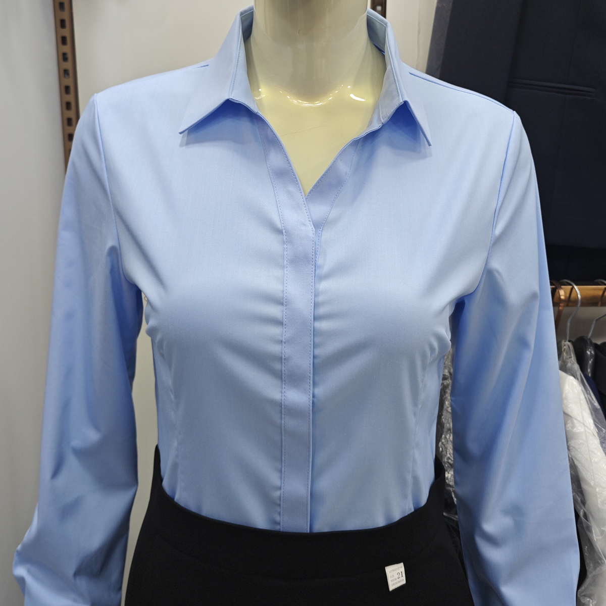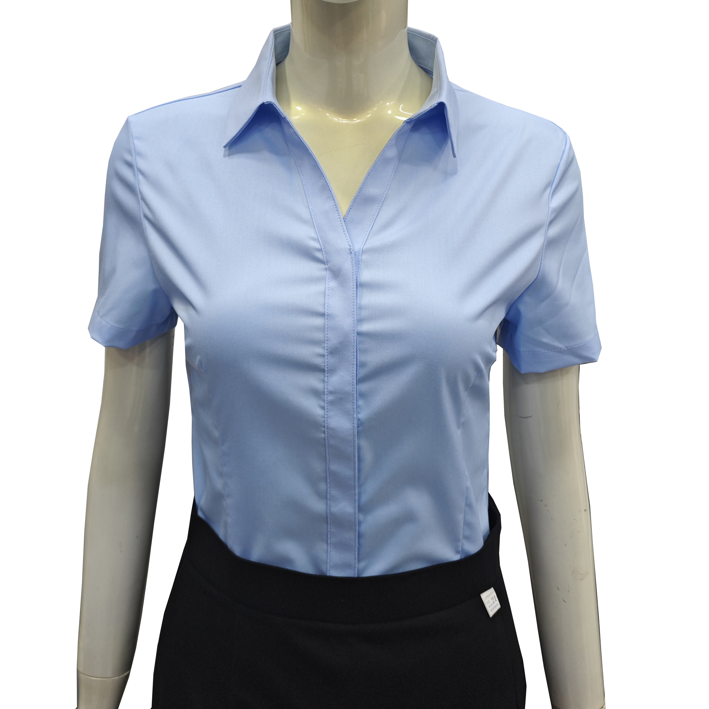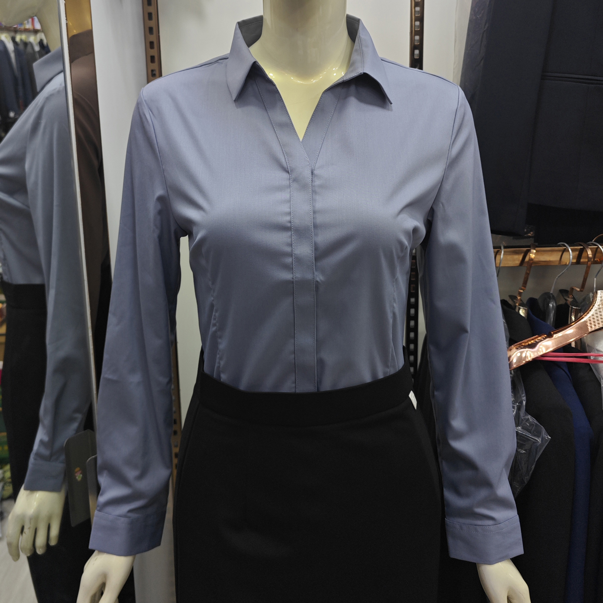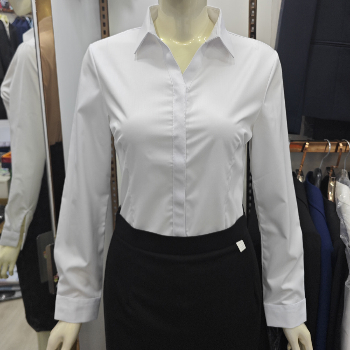 新款竹纤维白衬衫女短袖上衣工作服商务面试V领正装职业长袖衬衣