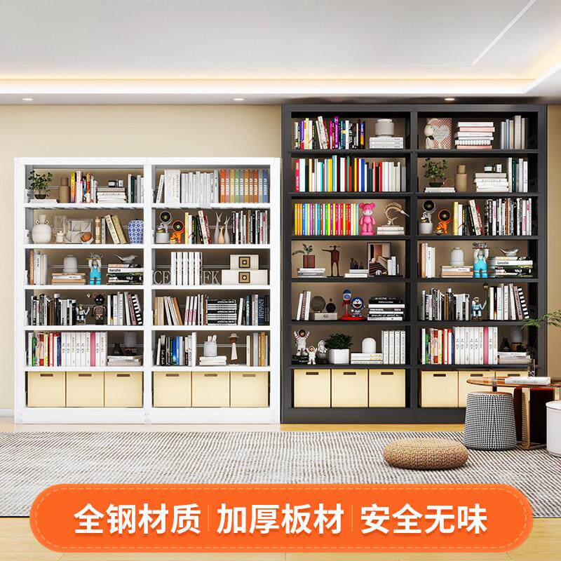图书馆书架书房落地书柜钢制书架铁艺简约书籍置物架家用儿童书架