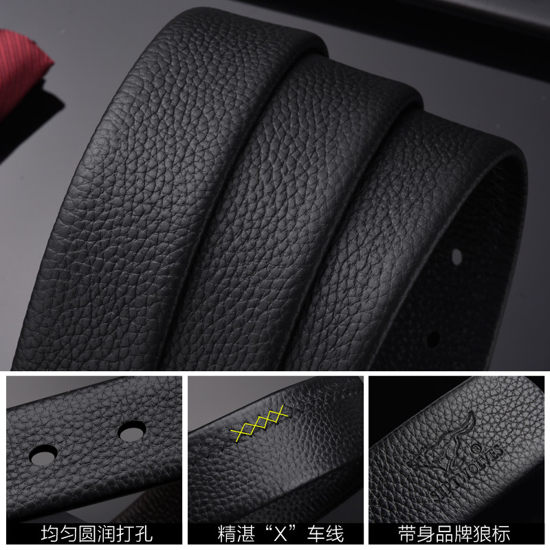 皮带胖子头层牛皮男七匹狼针扣