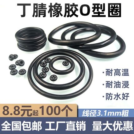 O型圈氟硅橡胶外径10/20/25/30/35/40*线径3.1防水耐油黑色密封圈