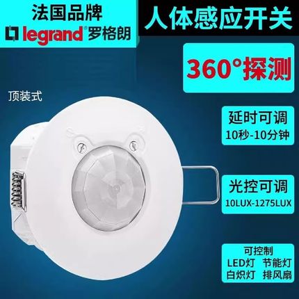 罗格朗莹悦人体感应开关吸顶式顶装红外线家用智能可调光线延时