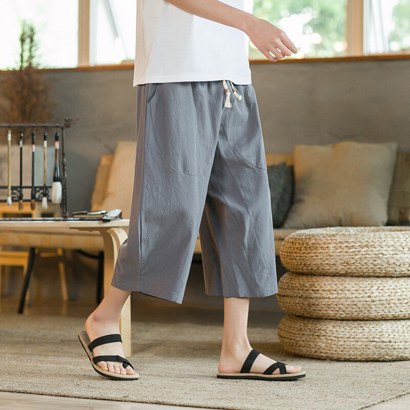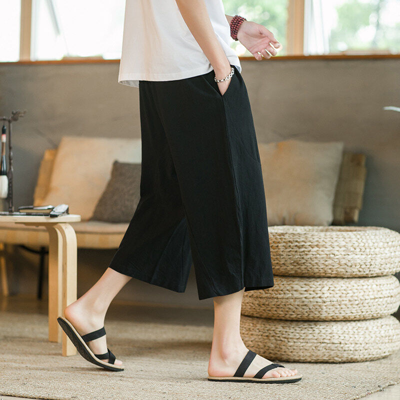 八分阔腿裤男夏季薄款棉麻裤子潮流宽松大码中国风休闲亚麻七分裤