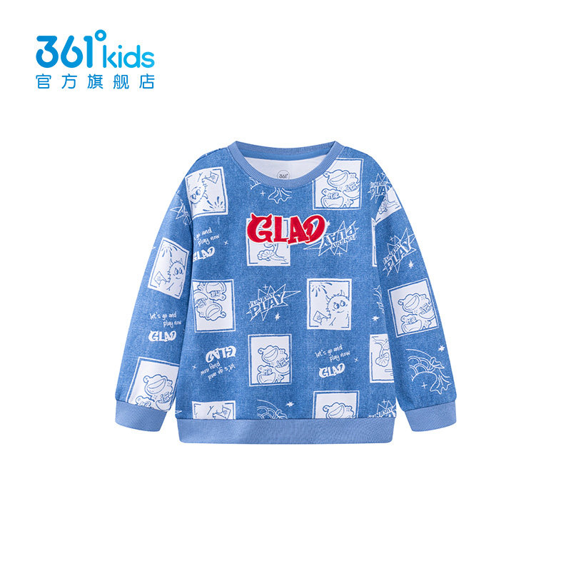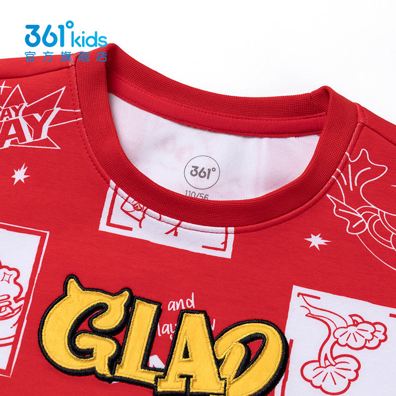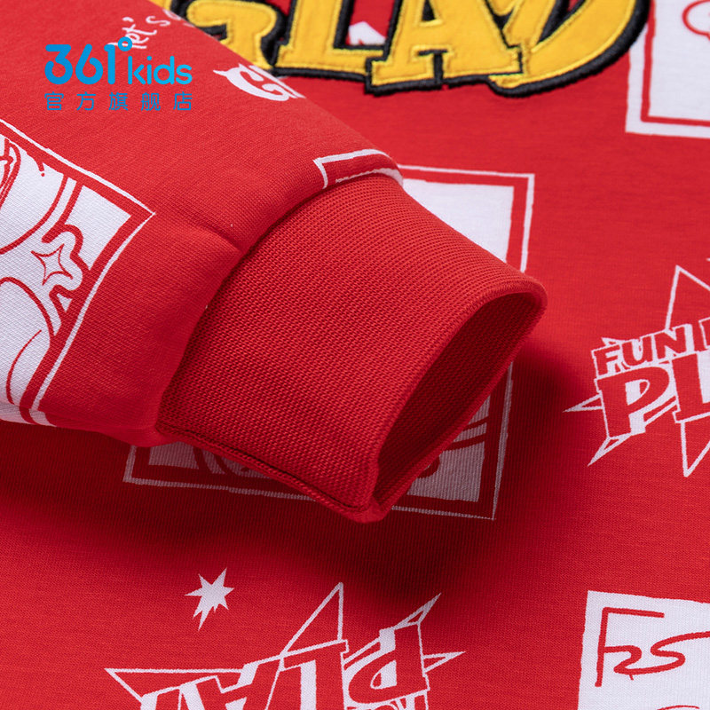 361度卡通印花红色卫衣男童2025秋冬同款圆领套头衫潮牌K52514302