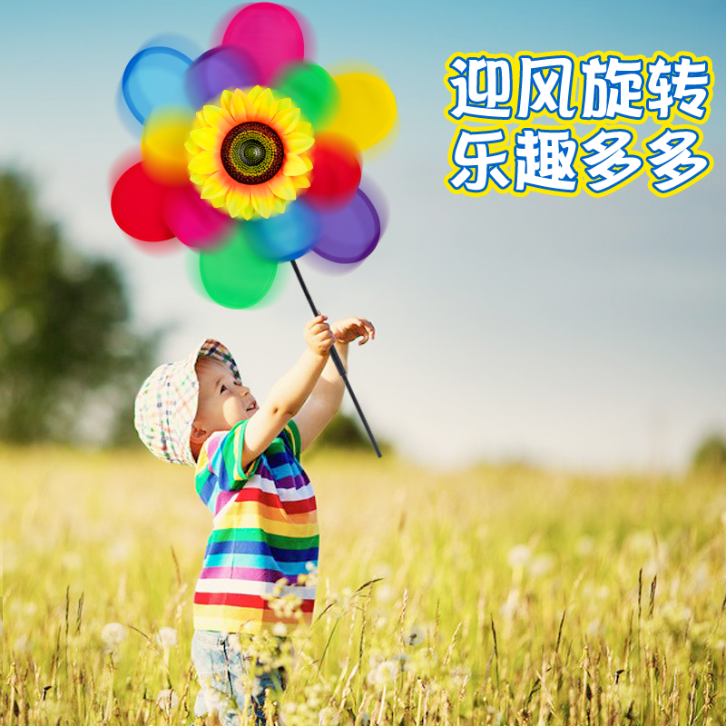 七彩风车户外旋转大风车彩色幼儿园塑料儿童手拿大号风车宝宝玩具
